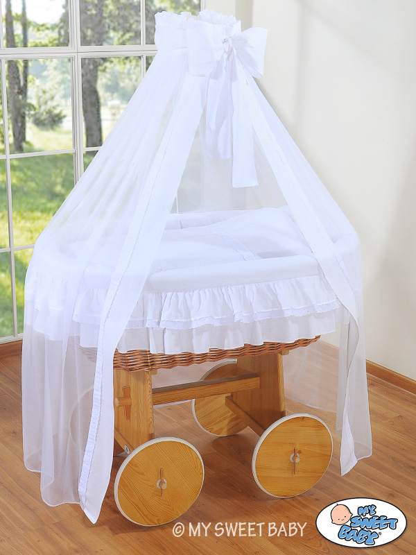 Kleinbaby.nl » Babywiege » Babywieg met Hemeltje Deluxe » Wiegen » Deluxe Kribbe met Rieten Babymand Wit Engel