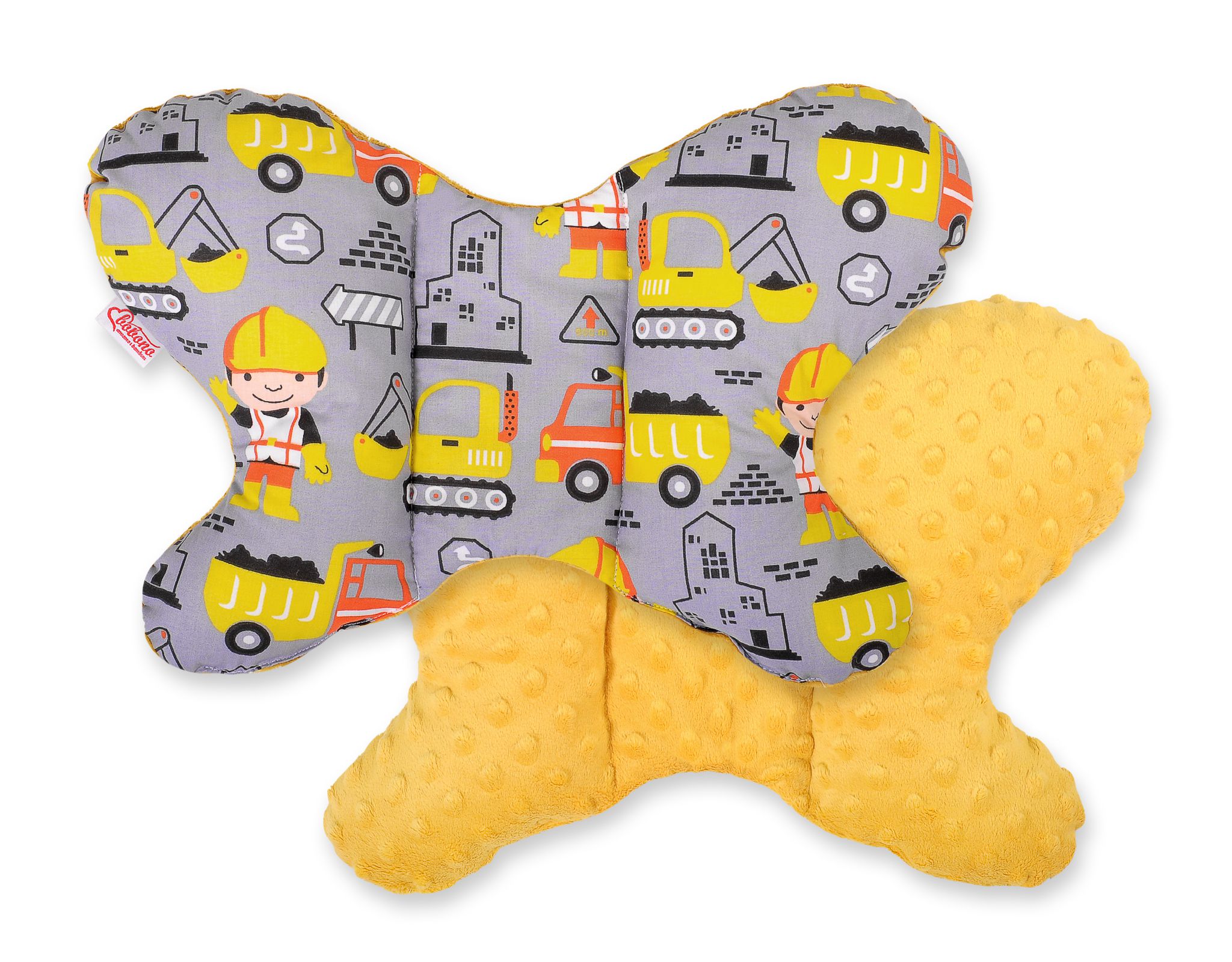 Kleinbaby.nl » Kinderwagen Autostoel » Dubbelzijdig Antischokkussen voor Baby » Dubbelzijdig Antischokkussen voor hoofd van de baby Geel Graafmachines Honing Mosterd