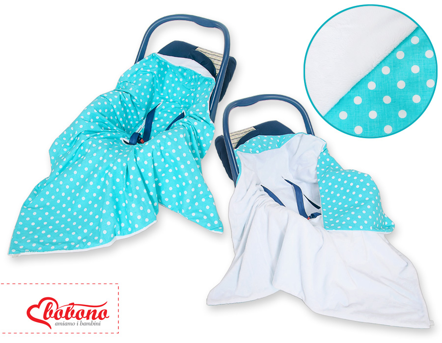 Kleinbaby.nl » Kinderwagen Autostoel » Dubbelzijdig Deken voor Autostoel » Dubbelzijdig Deken voor Baby-Autozitje Turkoois Polkaprikker