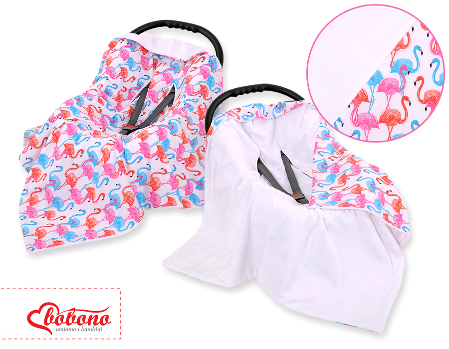 Kleinbaby.nl » Kinderwagen Autostoel » Dubbelzijdig Deken voor Autostoel » Dubbelzijdig Dekentje voor Baby Autostoel Flamingo