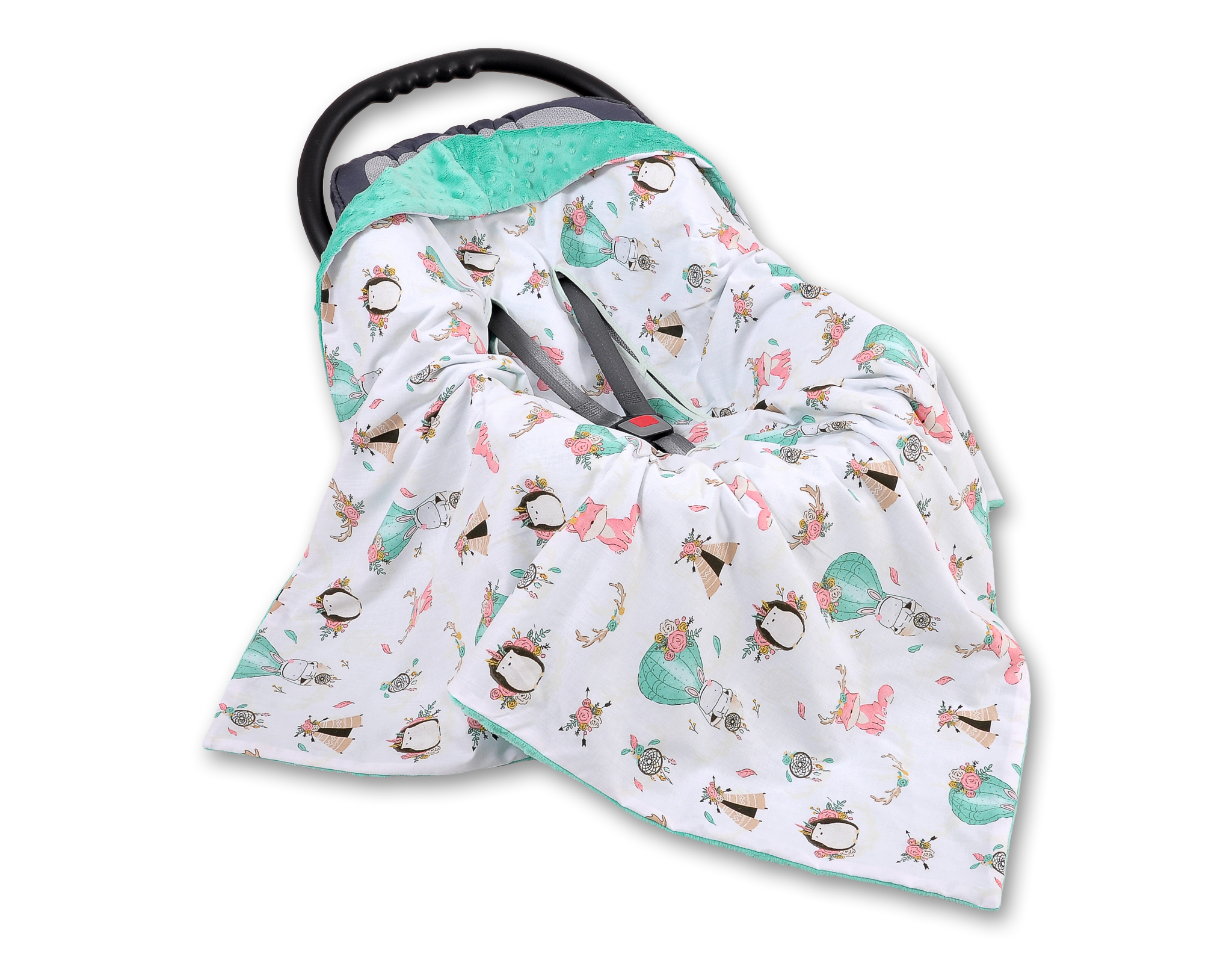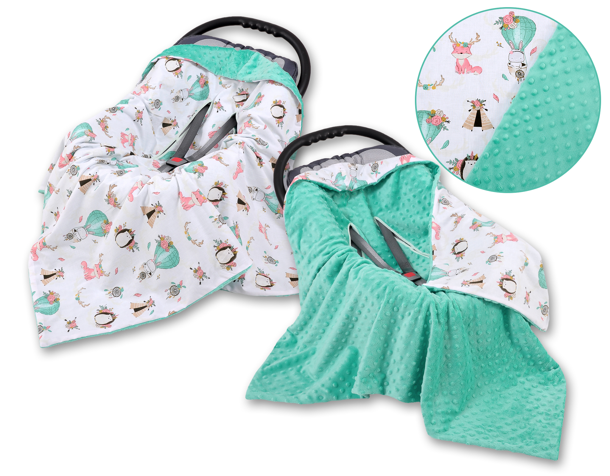 Dubbelzijdig  Dekentje voor Baby Autostoel Mint Beige Vos