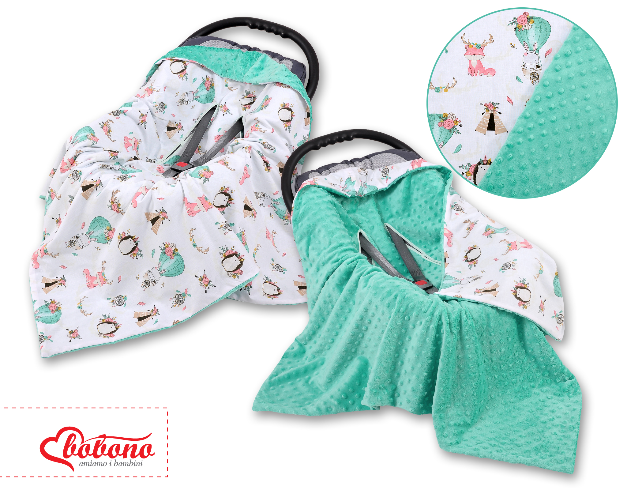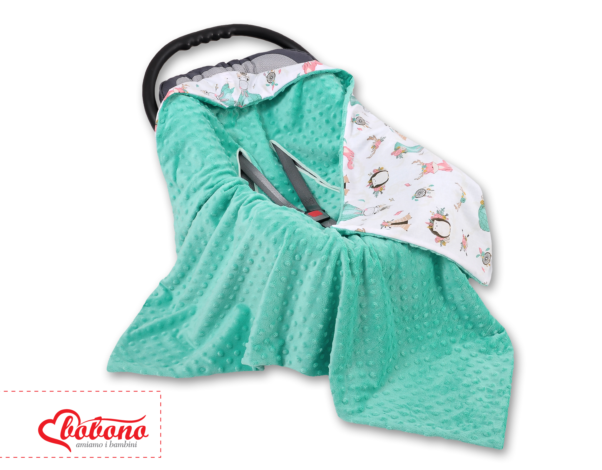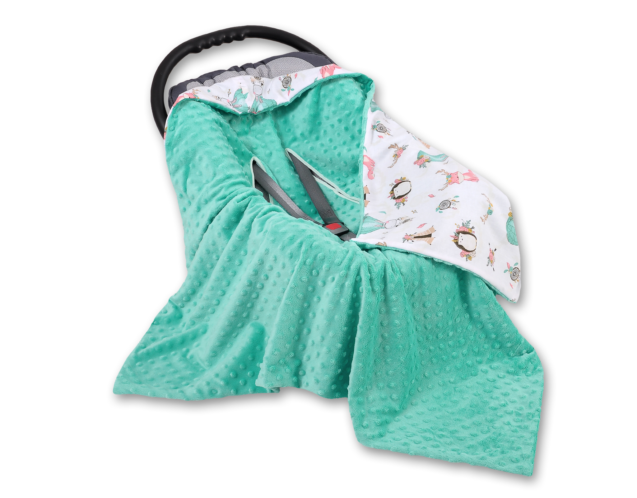 Kleinbaby.nl » Kinderwagen Autostoel » Dubbelzijdig Deken voor Autostoel » Dubbelzijdig Dekentje voor Baby Autostoel Mint Beige Vos