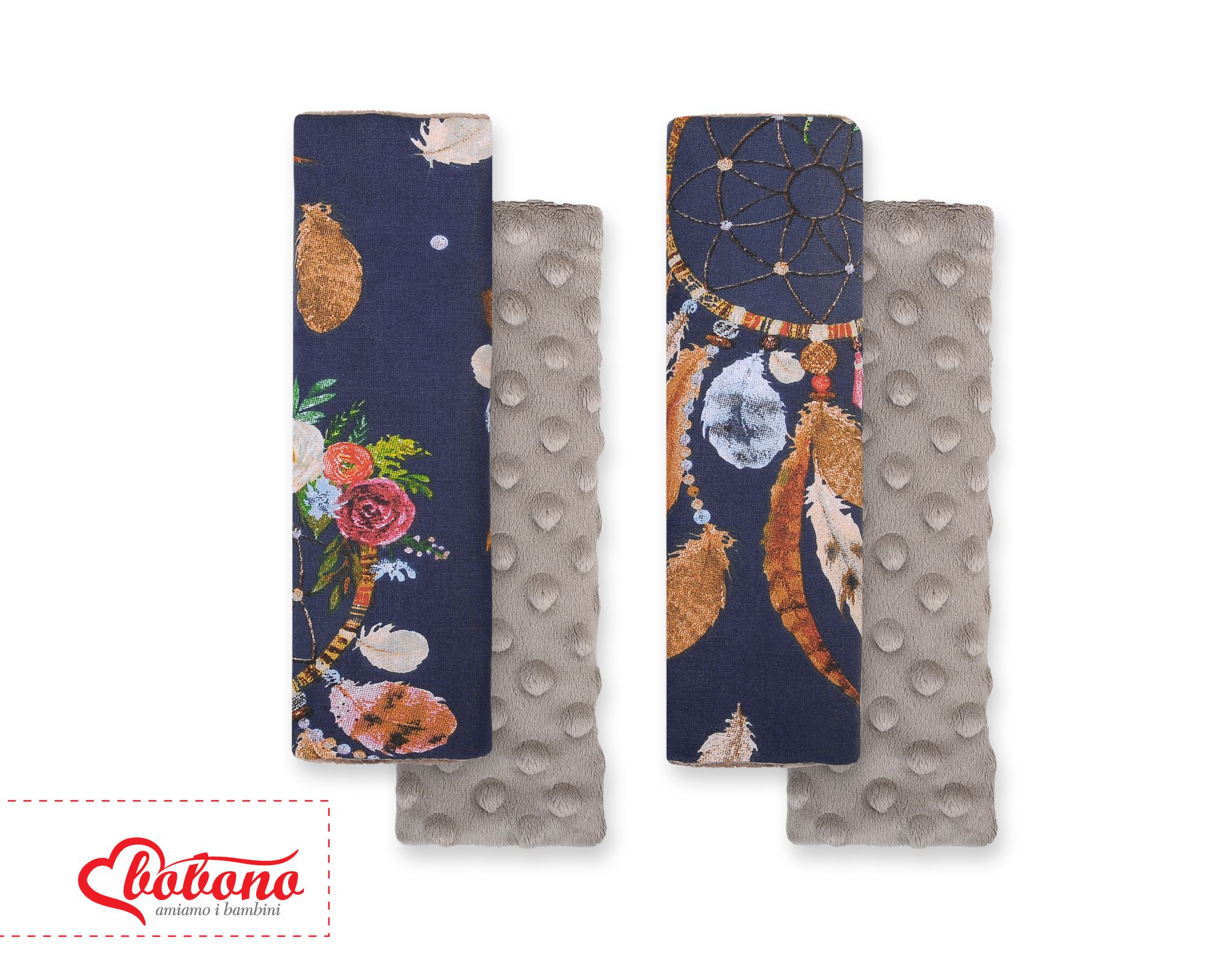 Kleinbaby.nl » Kinderwagen Autostoel » Dubbelzijdige Kussentjes » Dubbelzijdige Kussentjes voor Autogordels Bruin Donkerblauw Dromenvangers