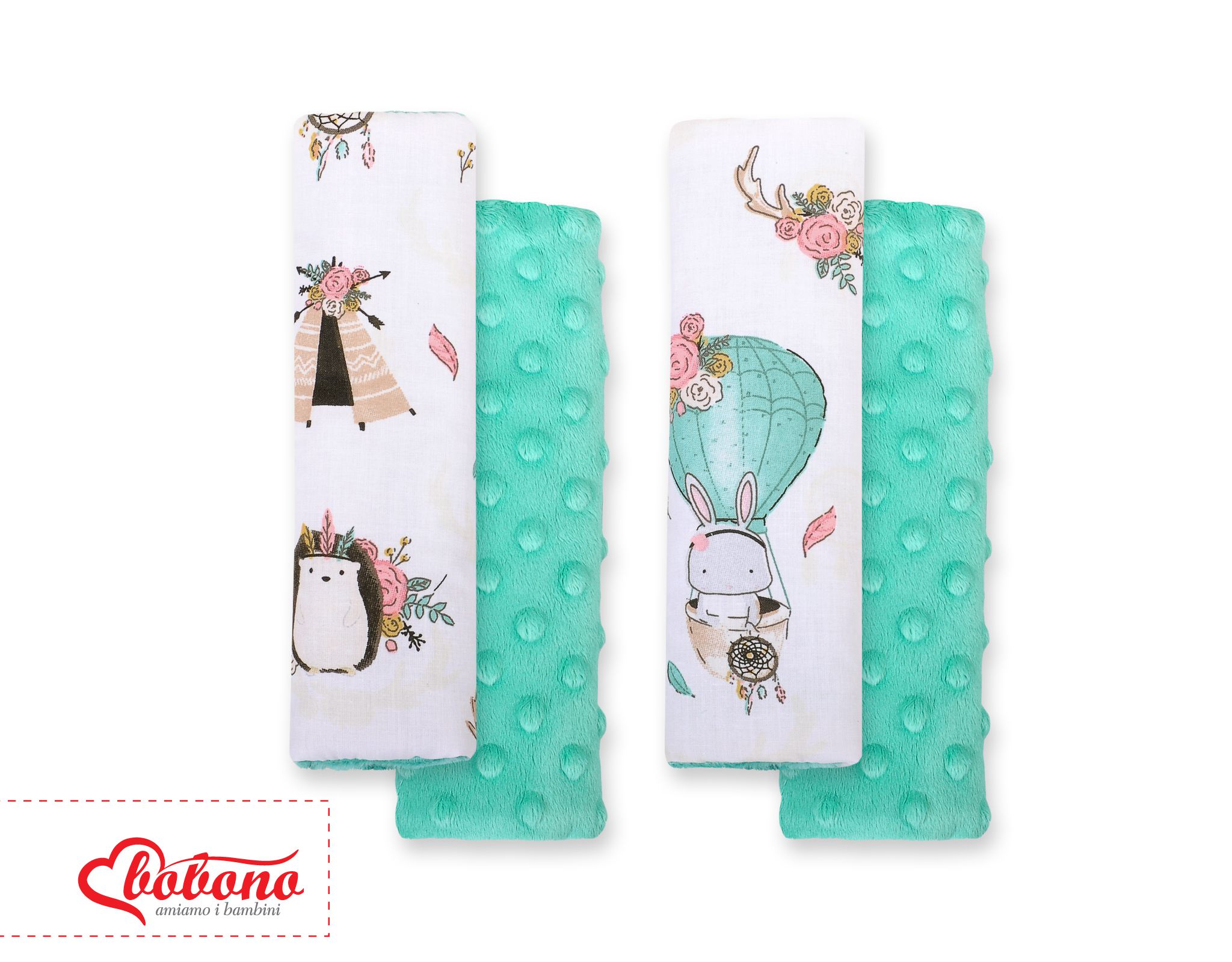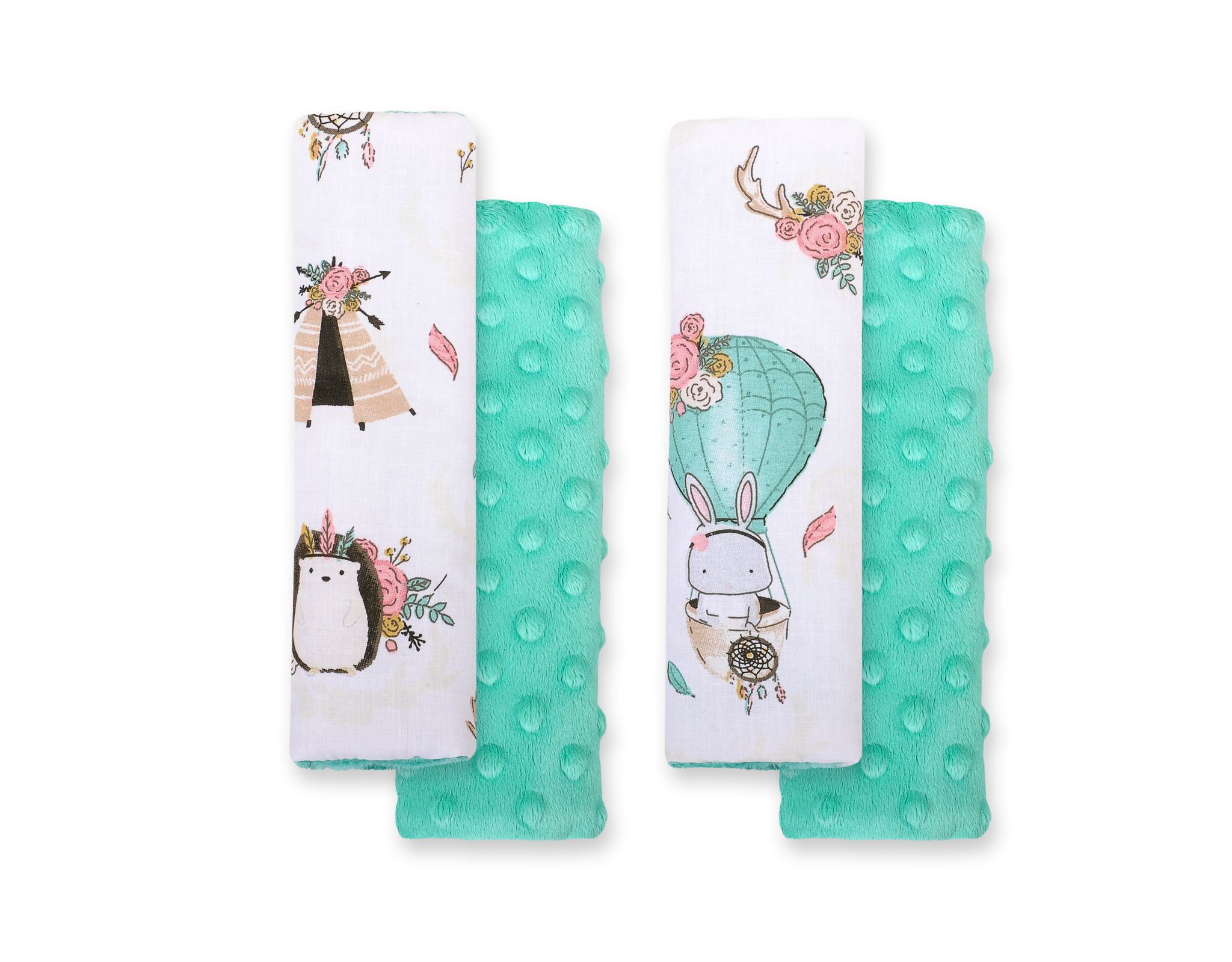 Kleinbaby.nl » Kinderwagen Autostoel » Dubbelzijdige Kussentjes » Dubbelzijdige Kussentjes voor Autogordels Mint Beige Vos