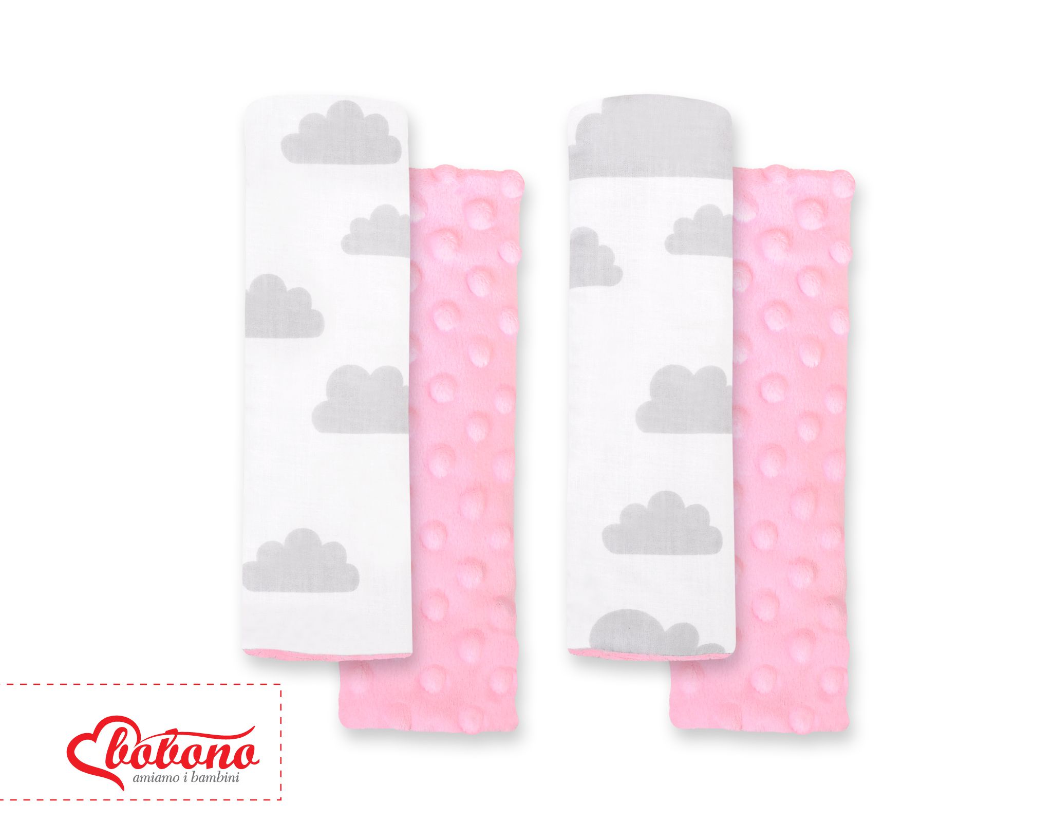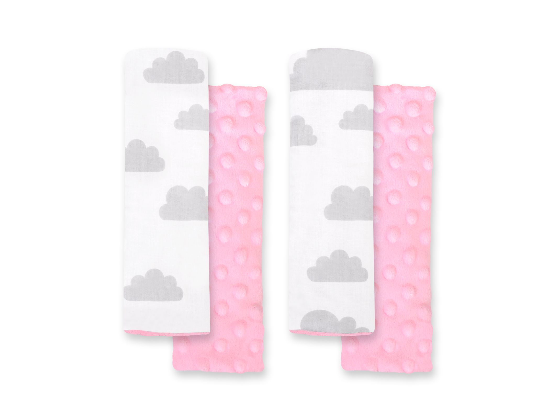 Kleinbaby.nl » Kinderwagen Autostoel » Dubbelzijdige Kussentjes » Dubbelzijdige Kussentjes voor Autogordels Roze Grijs Wolken
