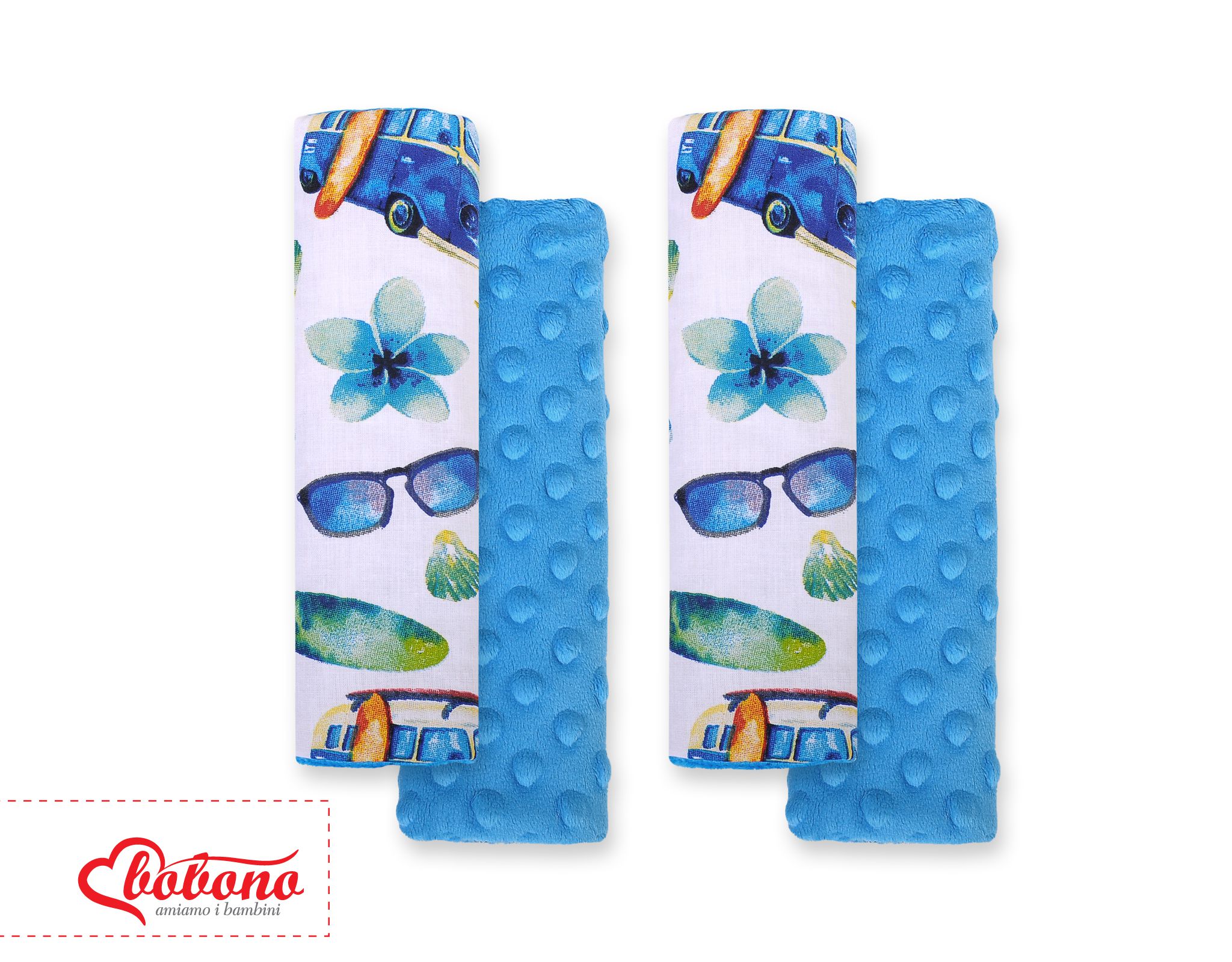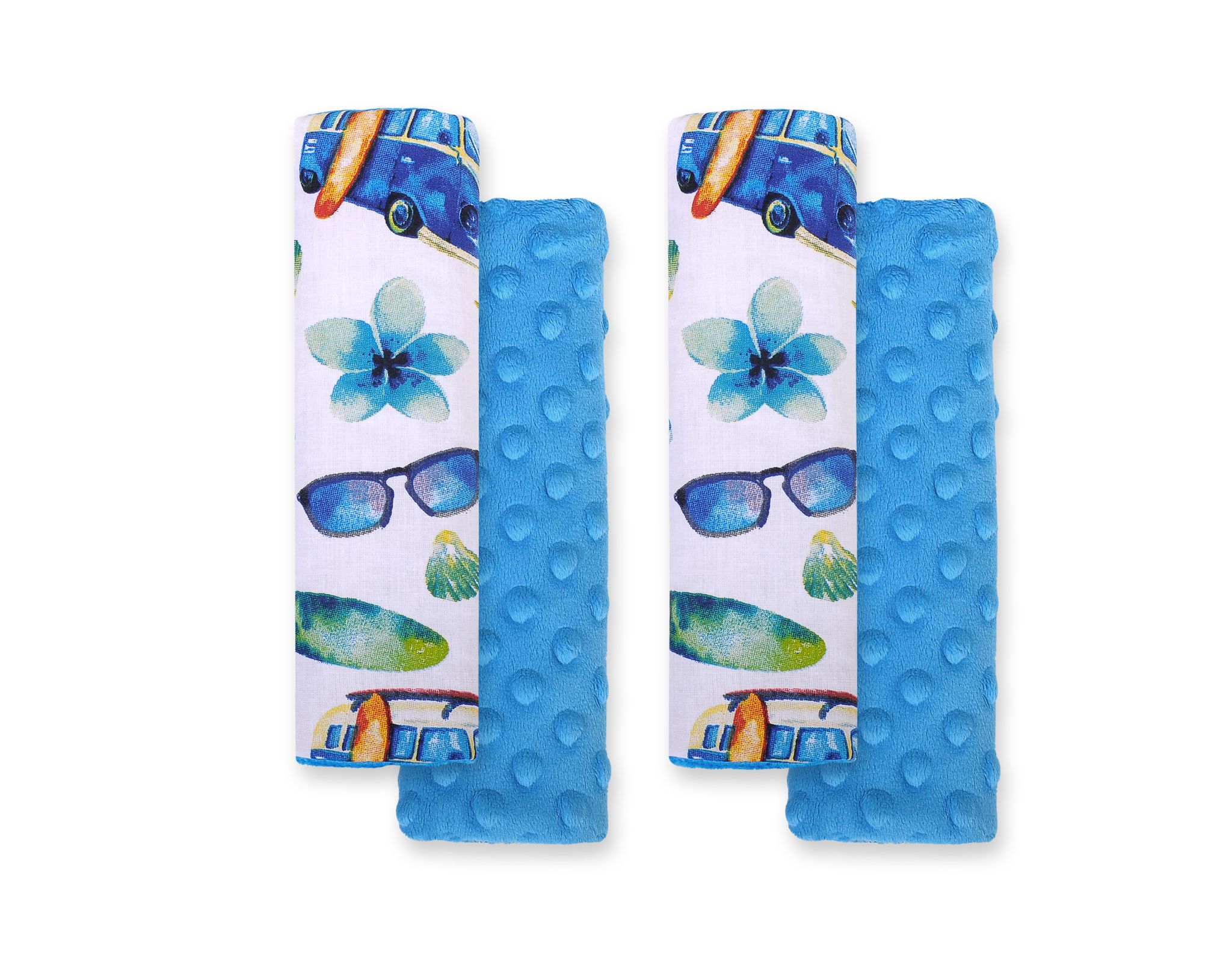 Gemaakt van 100% katoen en zacht aanvoelend 'minky' fleece. Met de klittenbandsluiting kunnen ze gemakkelijk om de veiligheidsgordel worden gewikkeld en het bieden ze het kind comfort.
