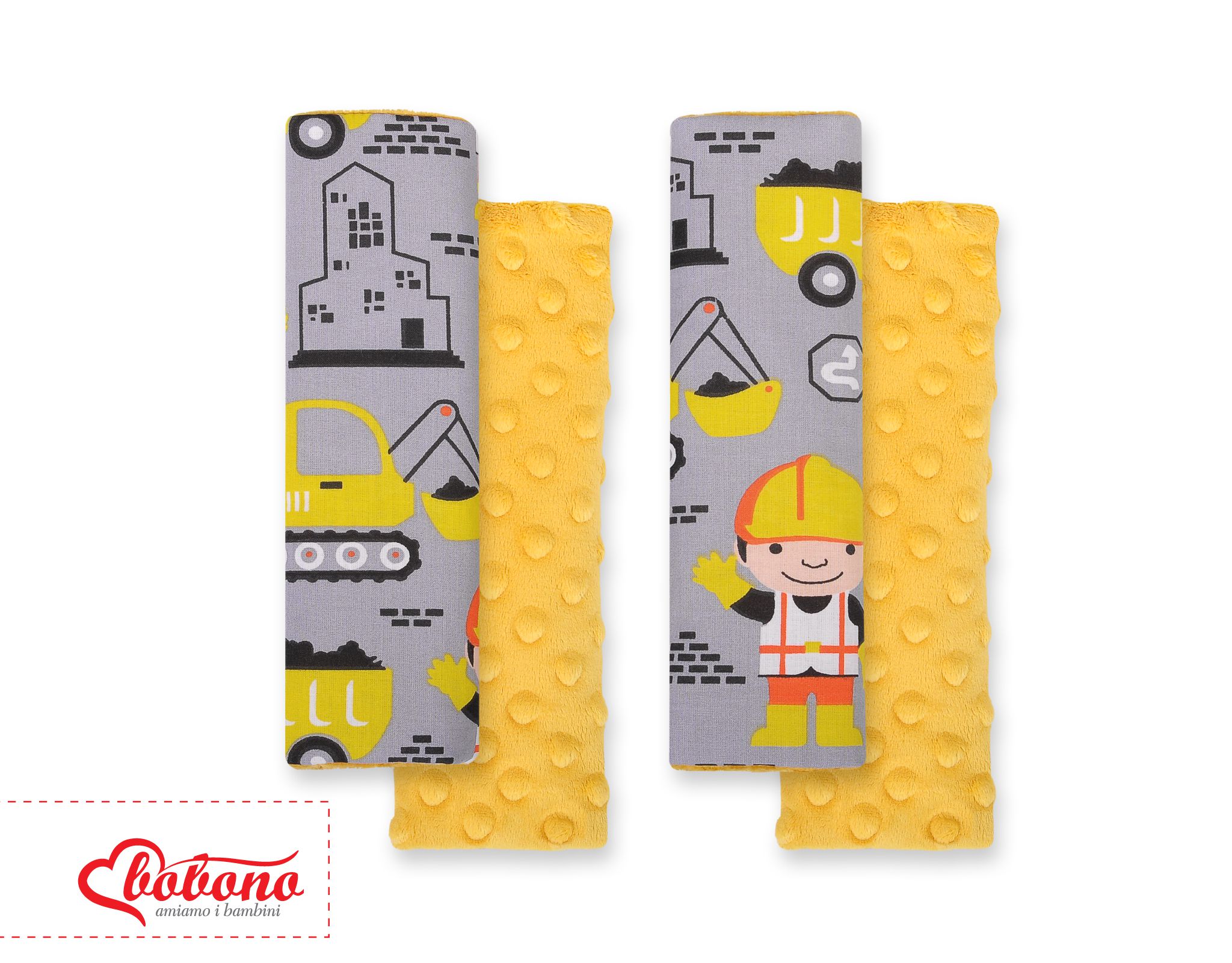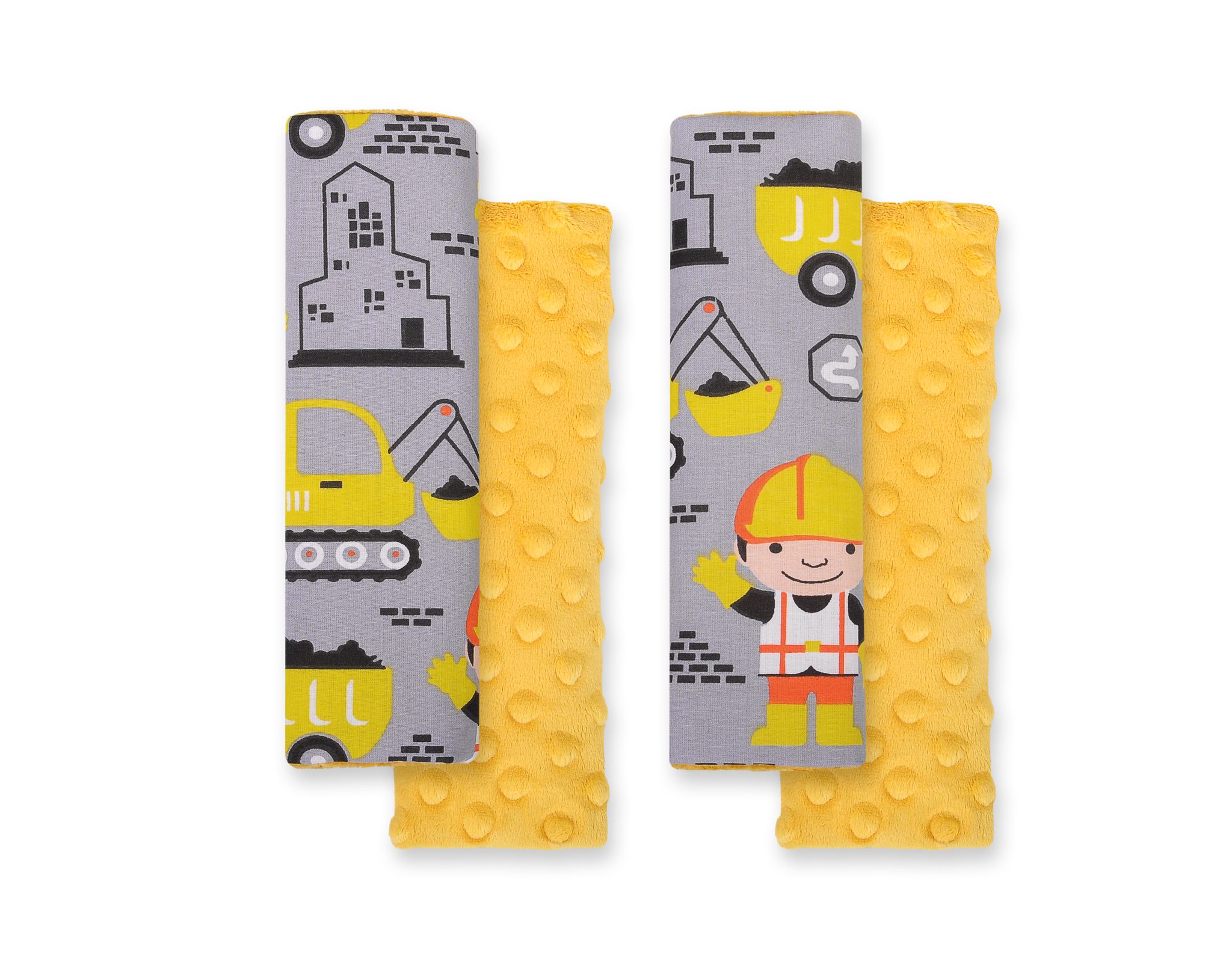 Kleinbaby.nl » Kinderwagen Autostoel » Dubbelzijdige Kussentjes » Dubbelzijdige Kussentjes voor Veiligheidsgordels Geel Graafmachines Honing Mosterd