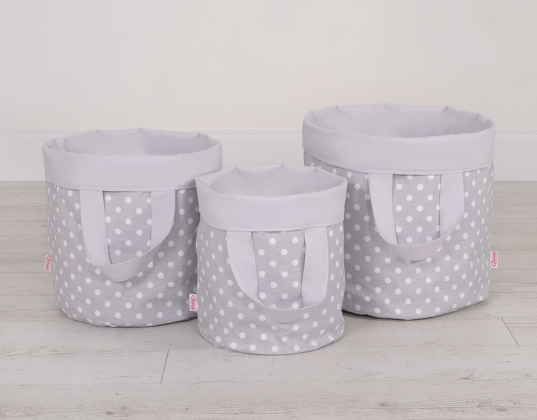 Kleinbaby.nl » Speelgoed Knuffels » Speelgoedmand » Speelgoedmand L » Dubbelzijdige Opbergmand L Grijs Polkaprikker