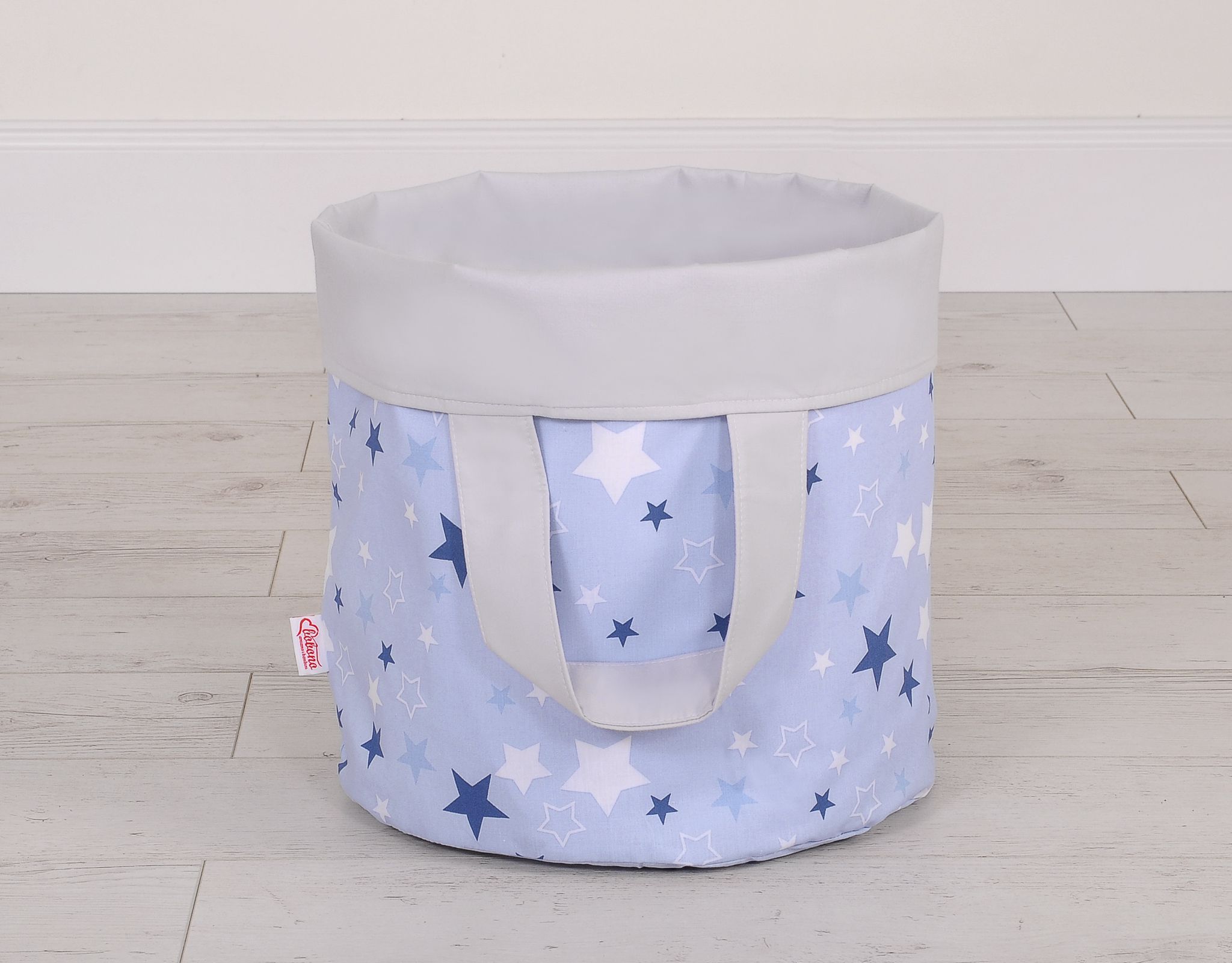 Kleinbaby.nl » Speelgoed Knuffels » Speelgoedmand » Speelgoedmand L » Dubbelzijdige Speelgoedmand L Blauw Grijs Sterren