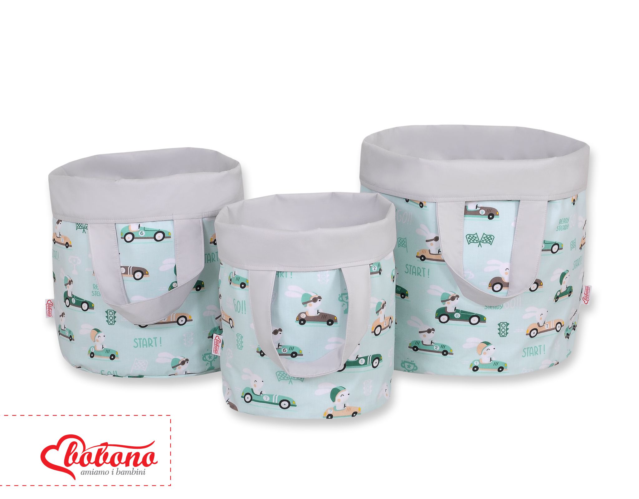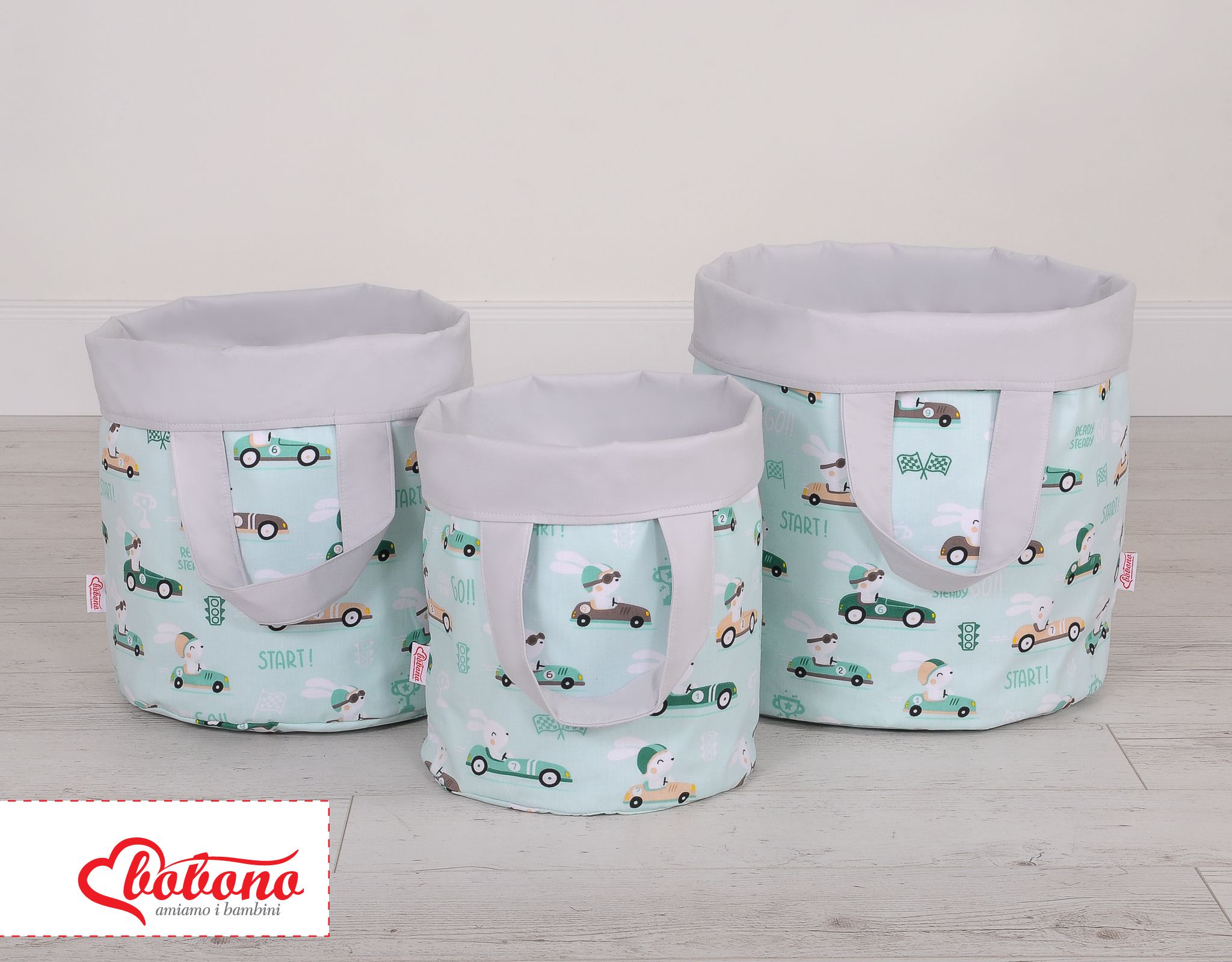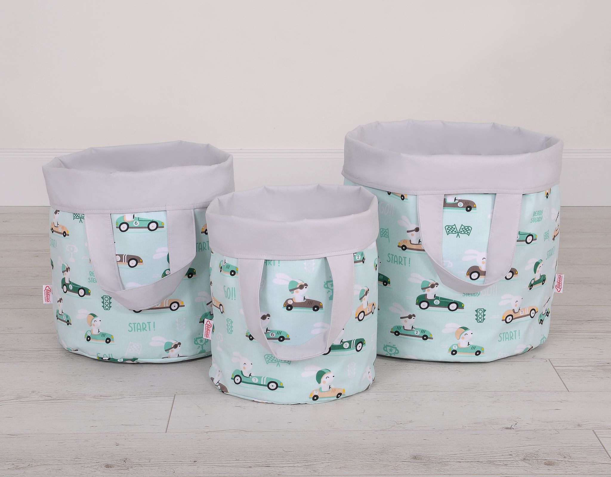 Kleinbaby.nl » Speelgoed Knuffels » Speelgoedmand » Speelgoedmand L » Dubbelzijdige Speelgoedmand L Mint Grijs Konijnen