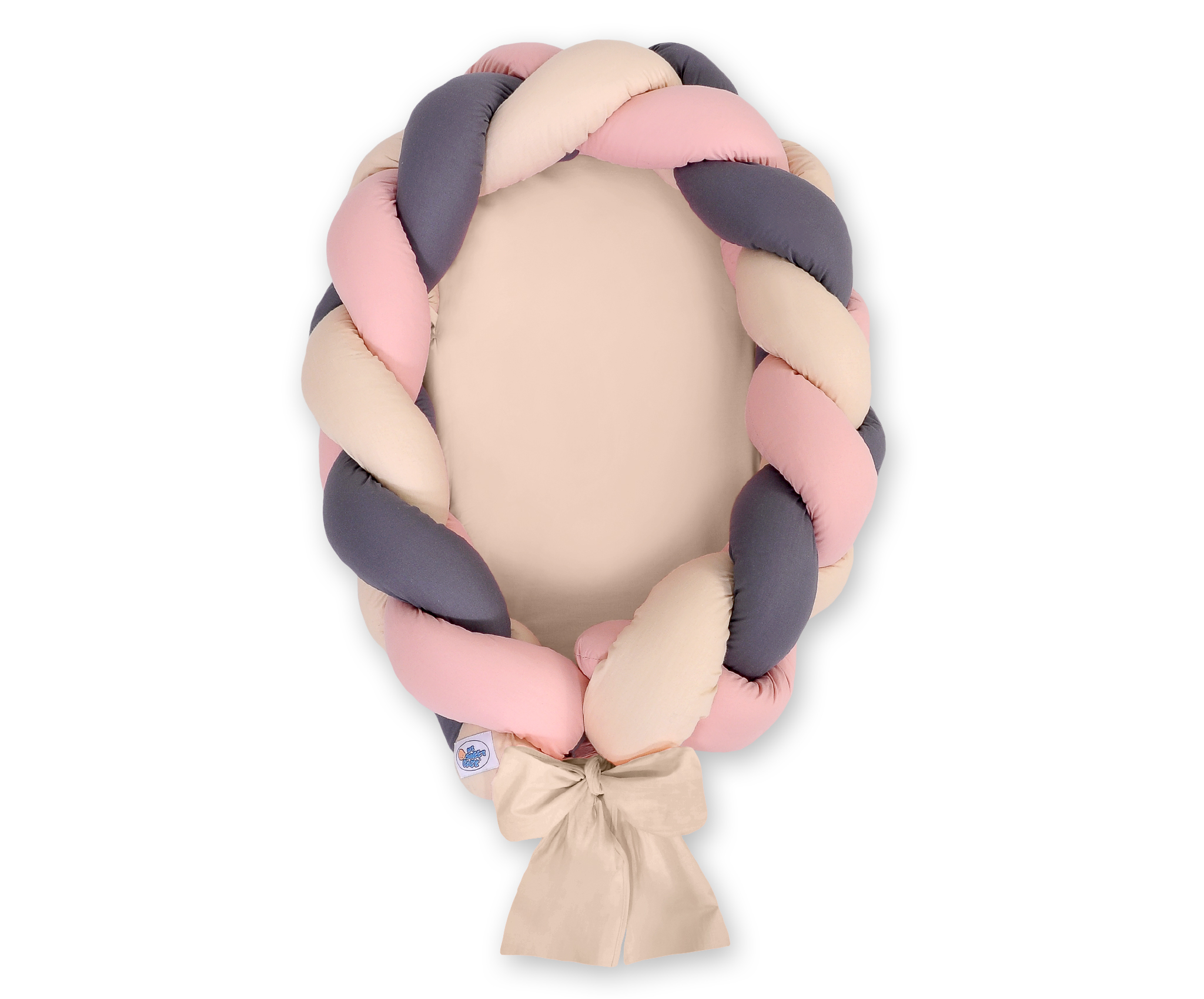 Gevlochten Babynest Geknoopte Bedbumper & Matras 2 in 1 Beige Antraciet StofrozeGevlochten Babynest Geknoopte Bedbumper & Matras 2 in 1 Beige Antraciet Stofroze
