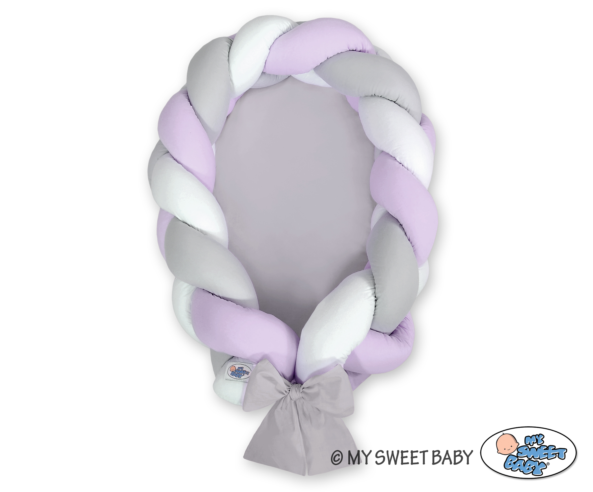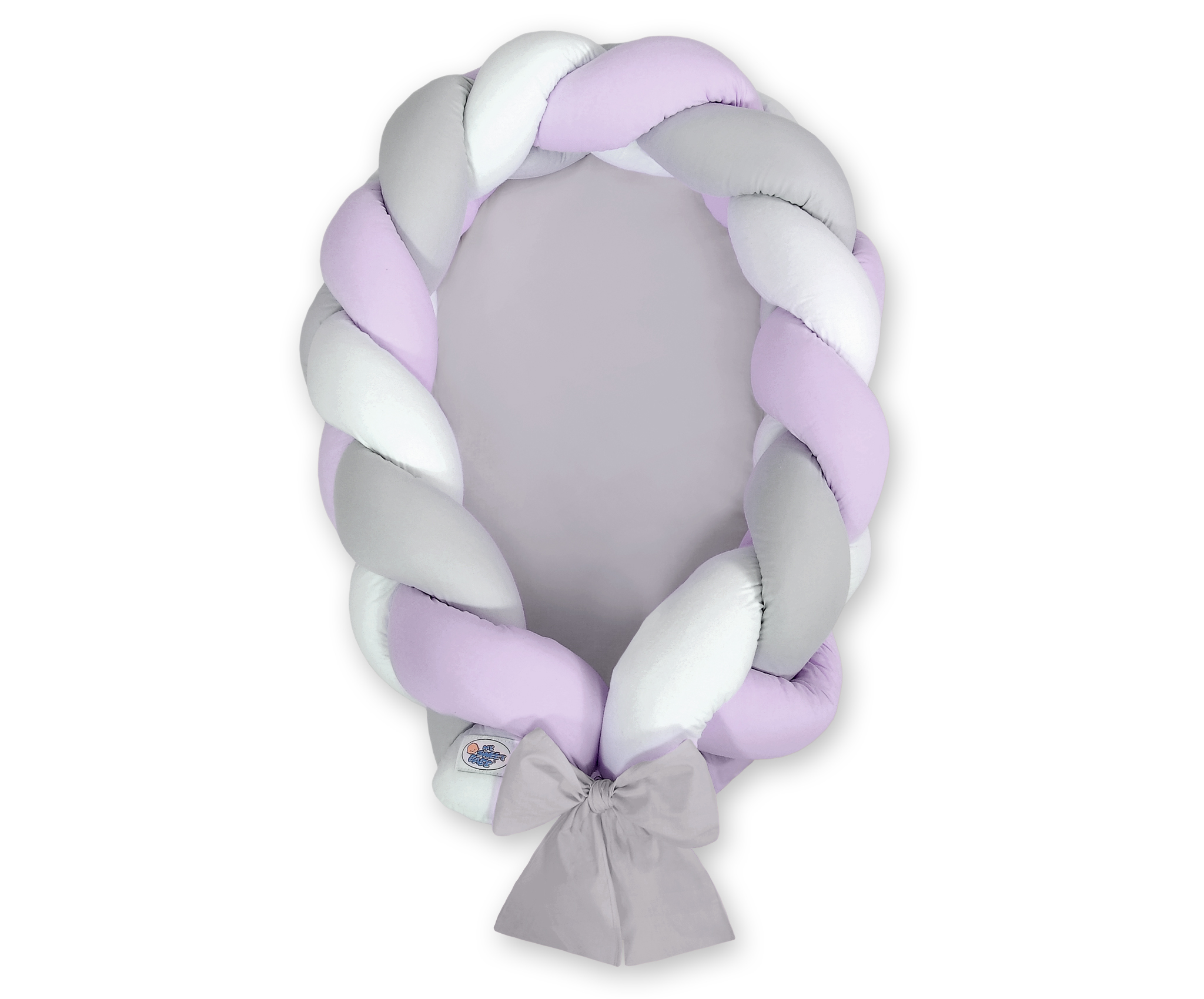 Gevlochten Babynest Geknoopte Bedbumper & Matras 2 in 1 Wit Grijs Purper