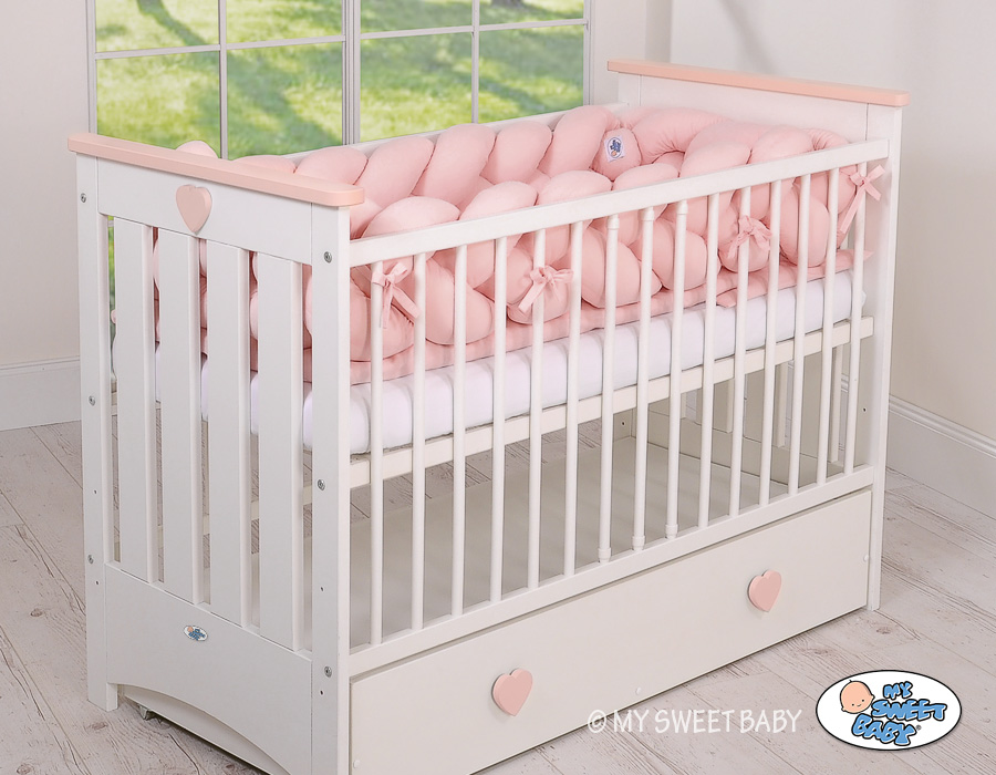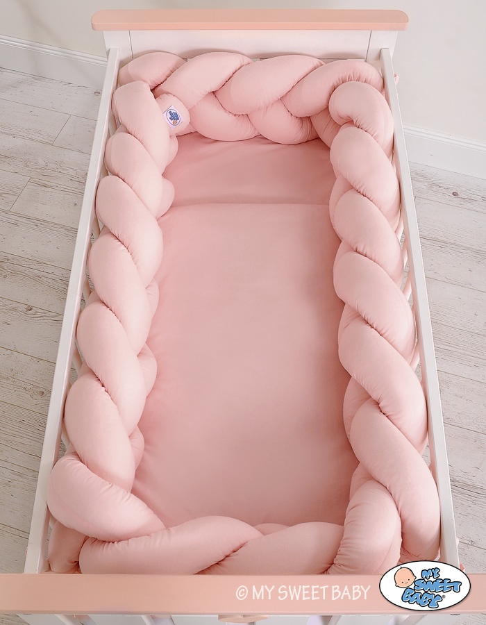 Kleinbaby.nl » Gevlochten Collectie » Gevlochten Bedbumper » Gevlochten Bedbumper voor Ledikant XXL 3,6 m Stofroze