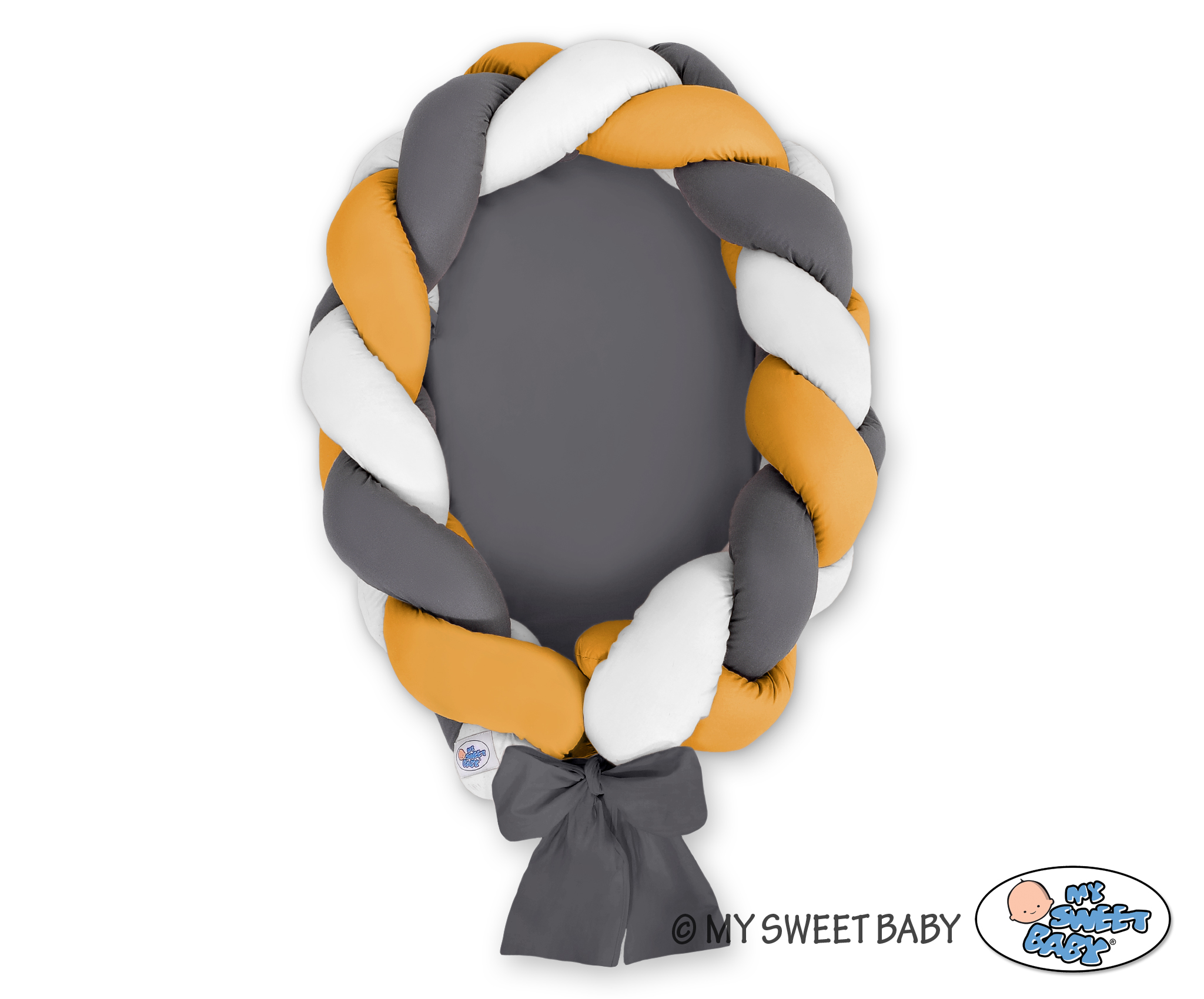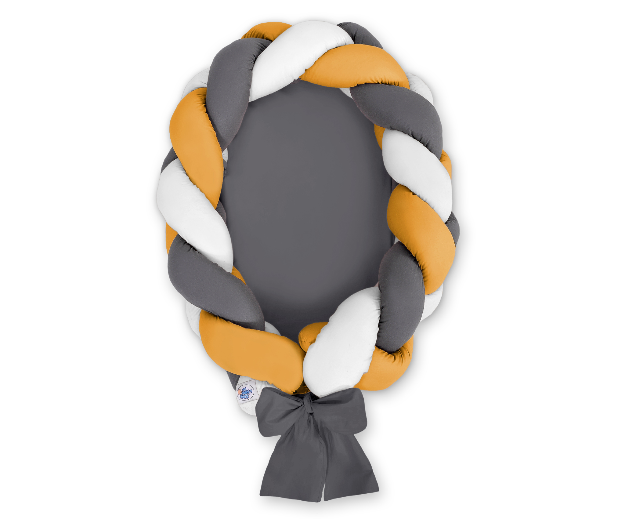 Gevlochten Bedomrander Babynestje 2 in 1 Wit Antraciet Honing MosterdGevlochten Bedomrander Babynestje 2 in 1 Wit Antraciet Honing Mosterd