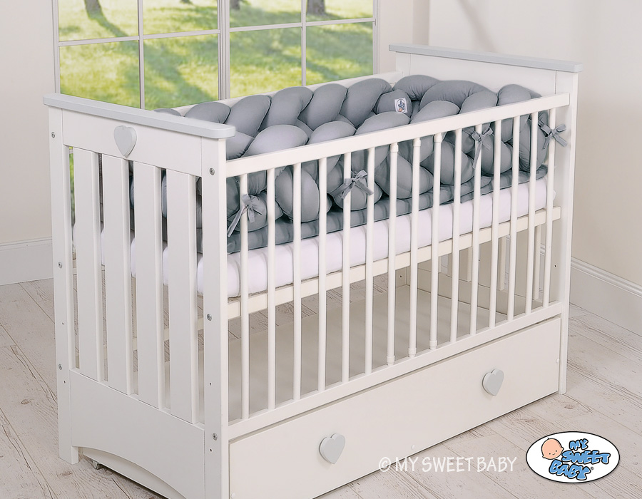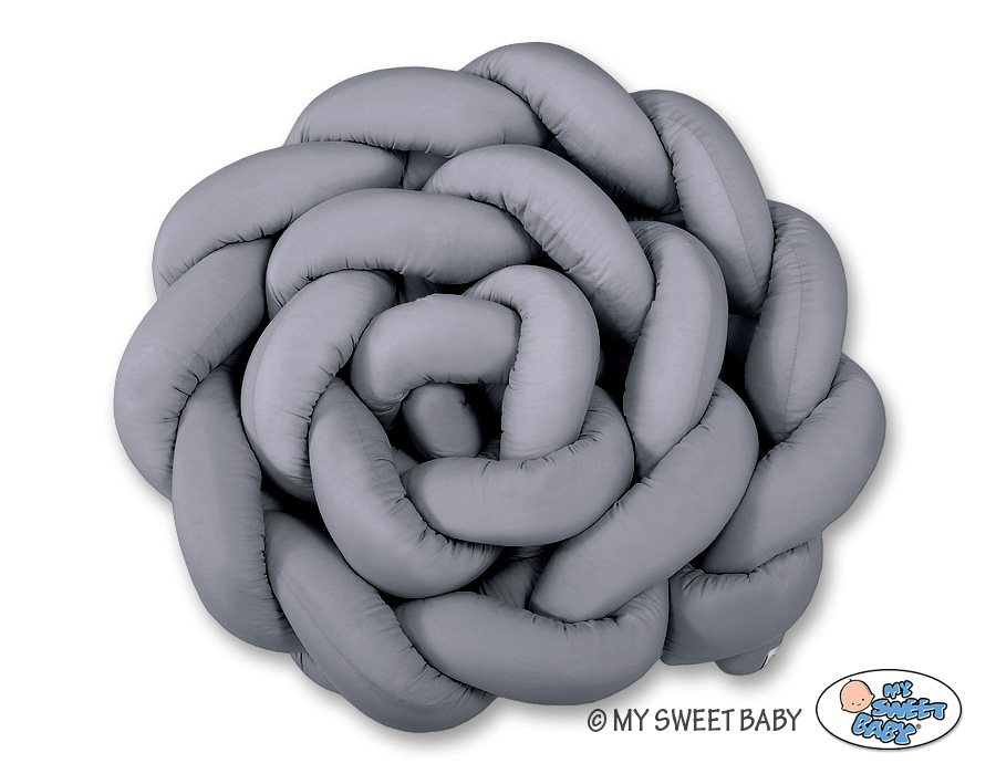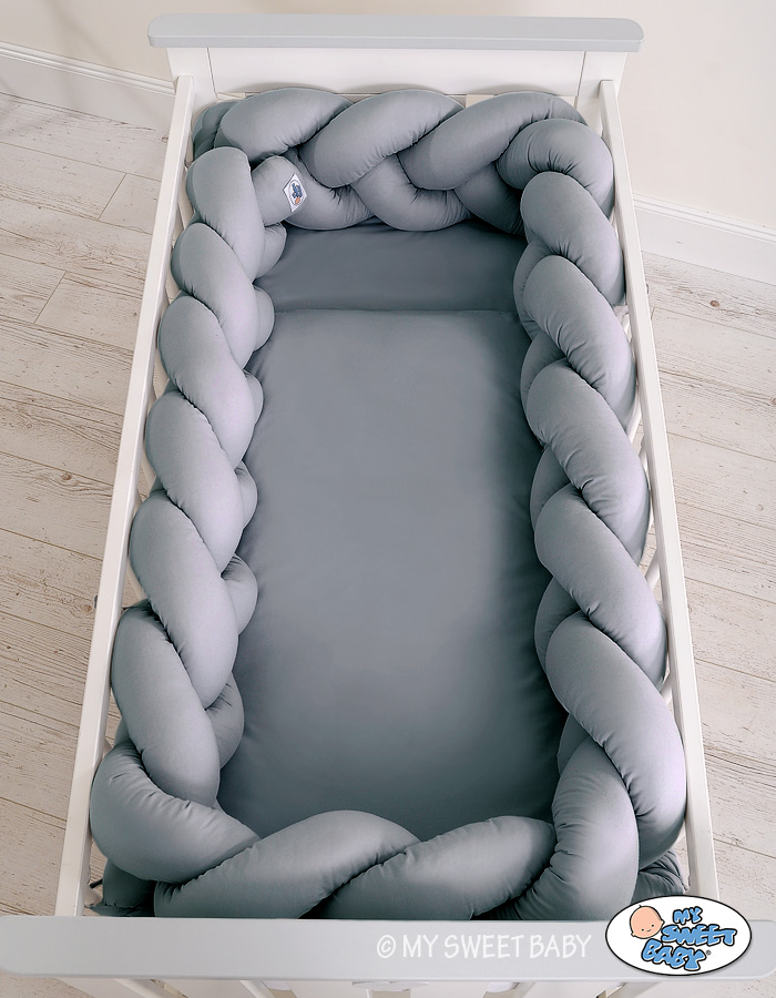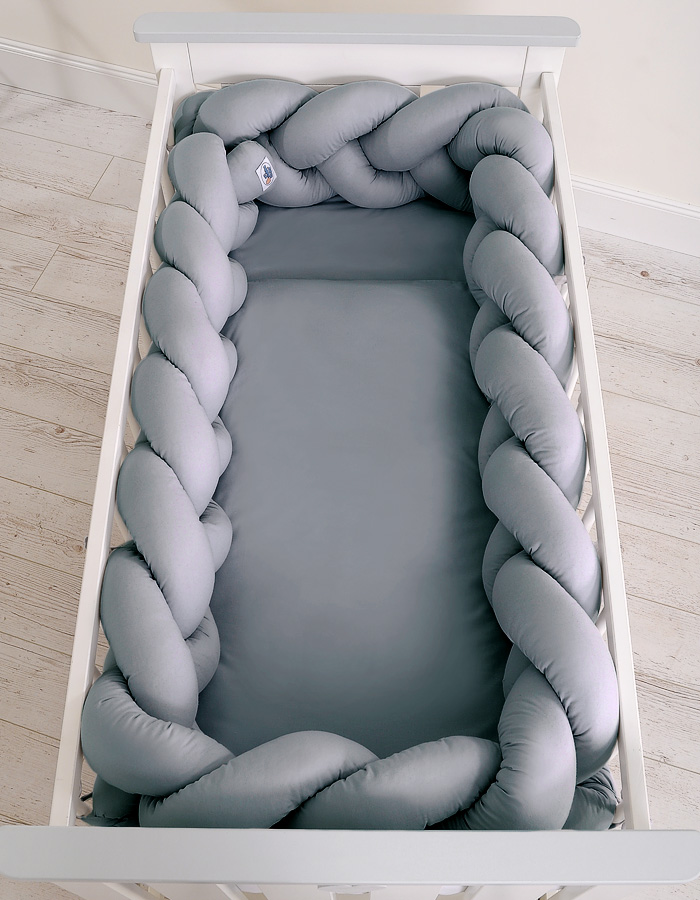 Kleinbaby.nl » Gevlochten Collectie » Gevlochten Bedbumper » Gevlochten Bedomrander Ledikant XXL Knoop Grijs Antraciet