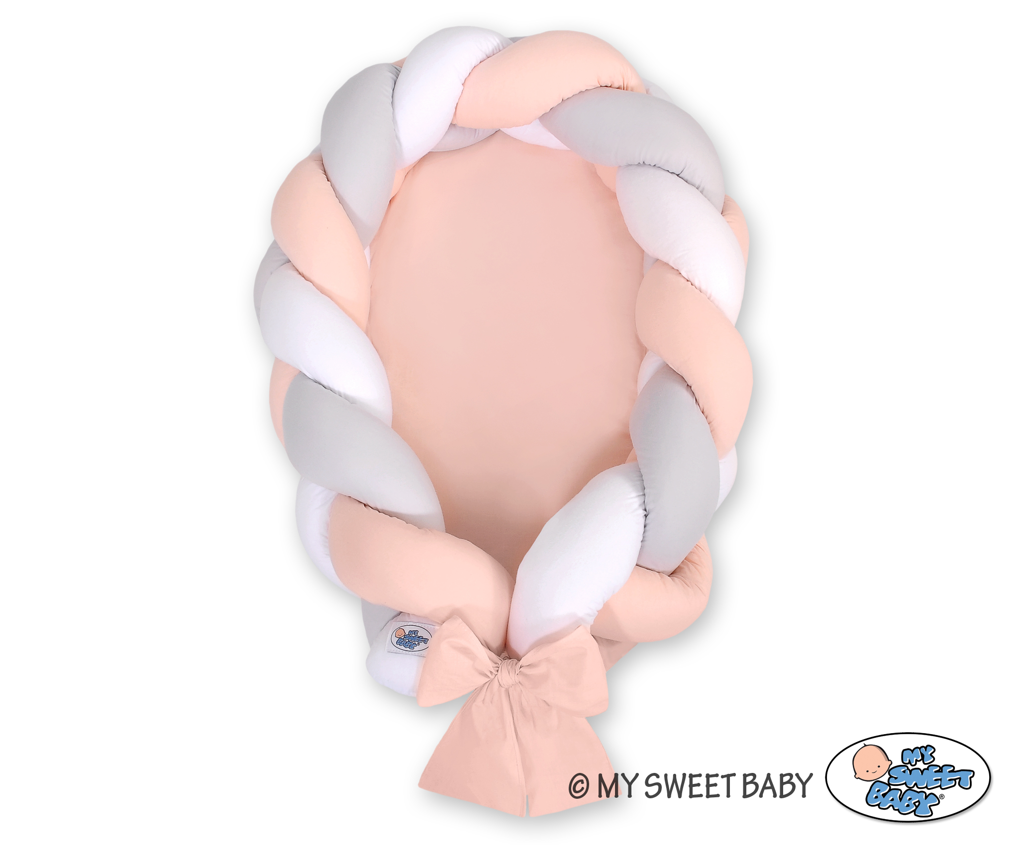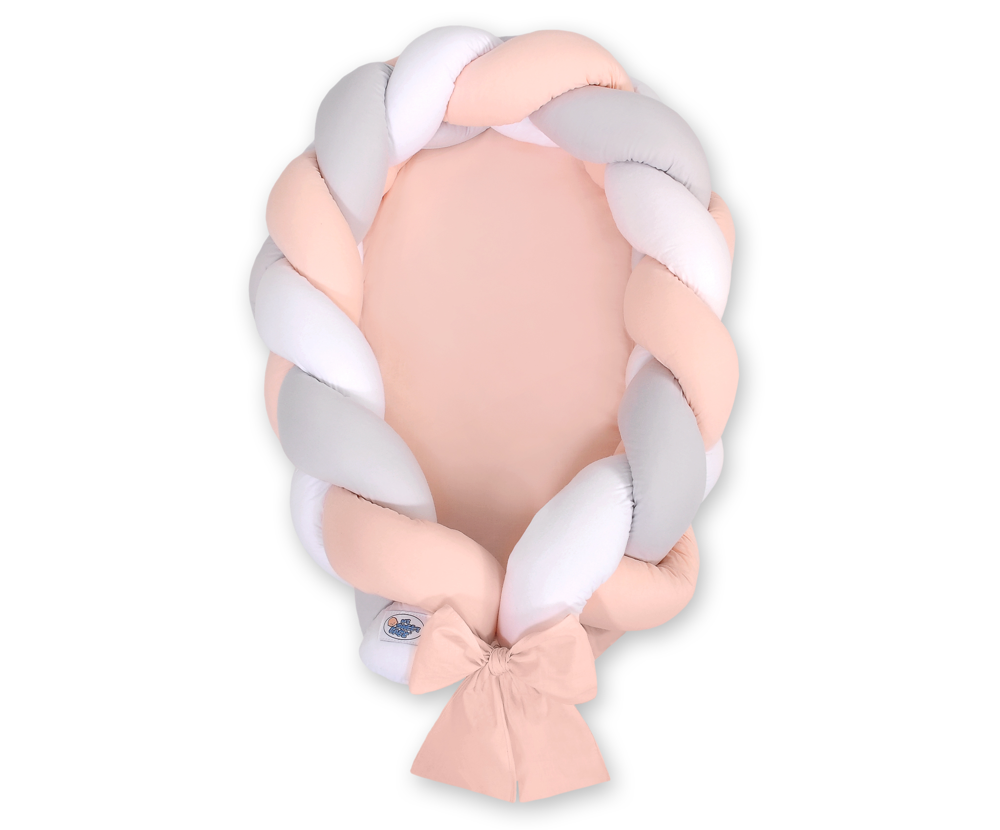 Kleinbaby.nl » Gevlochten Collectie » Gevlochten Babynest 2 in 1 » Gevlochten Bedrand Babynestje 2 in 1 Wit Grijs Poederroze
