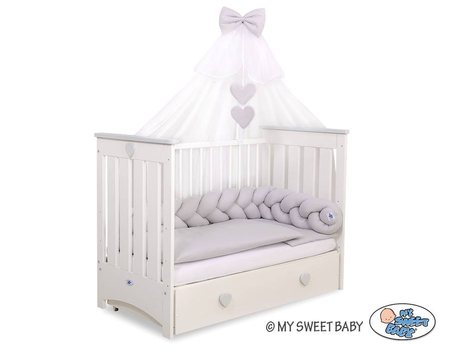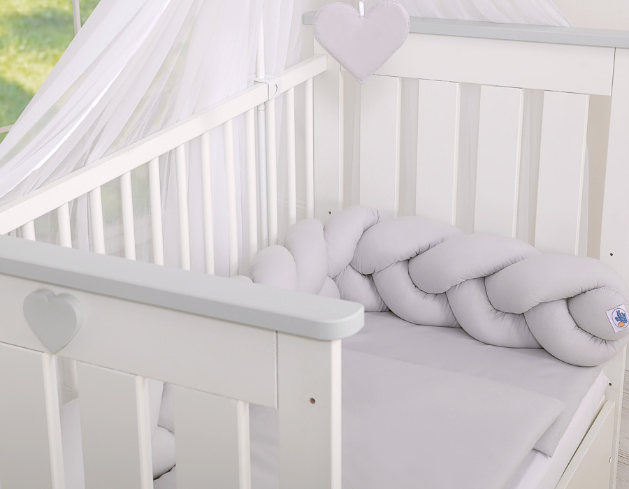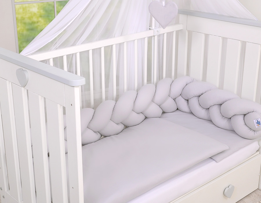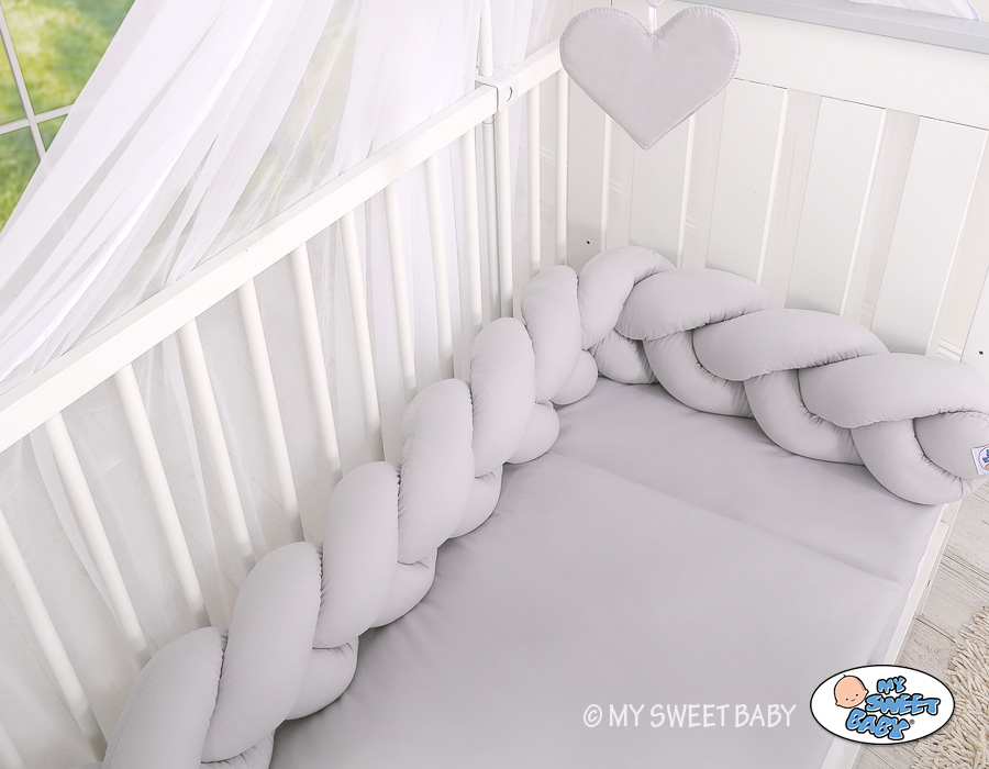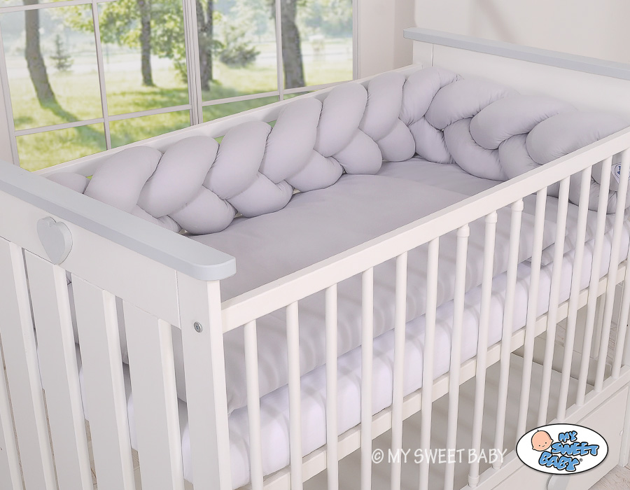 Kleinbaby.nl » Gevlochten Collectie » Gevlochten Bedomrander » Gevlochten Box-Bedbumper Ledikant 180 cm Grijs