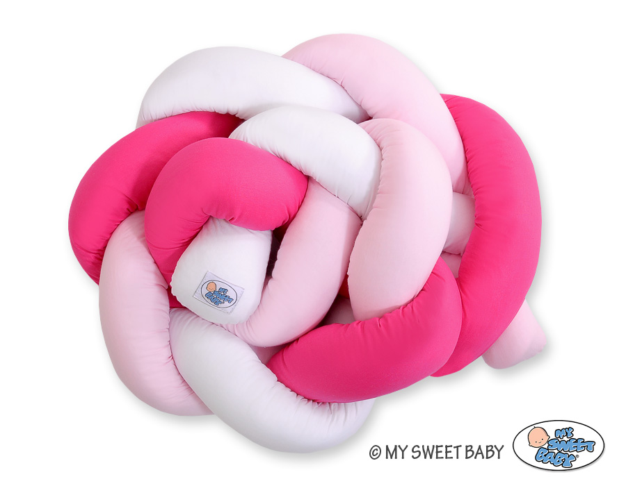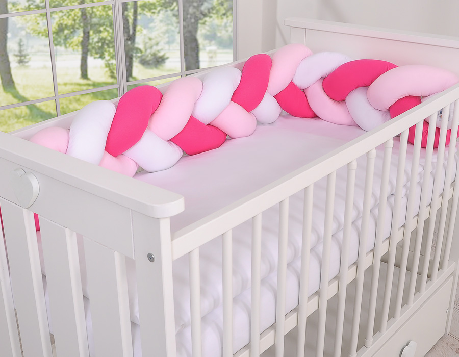 Kleinbaby.nl » Gevlochten Collectie » Gevlochten Bedomrander » Gevlochten Box-Bedbumper Ledikant 180 cm Roze Wit