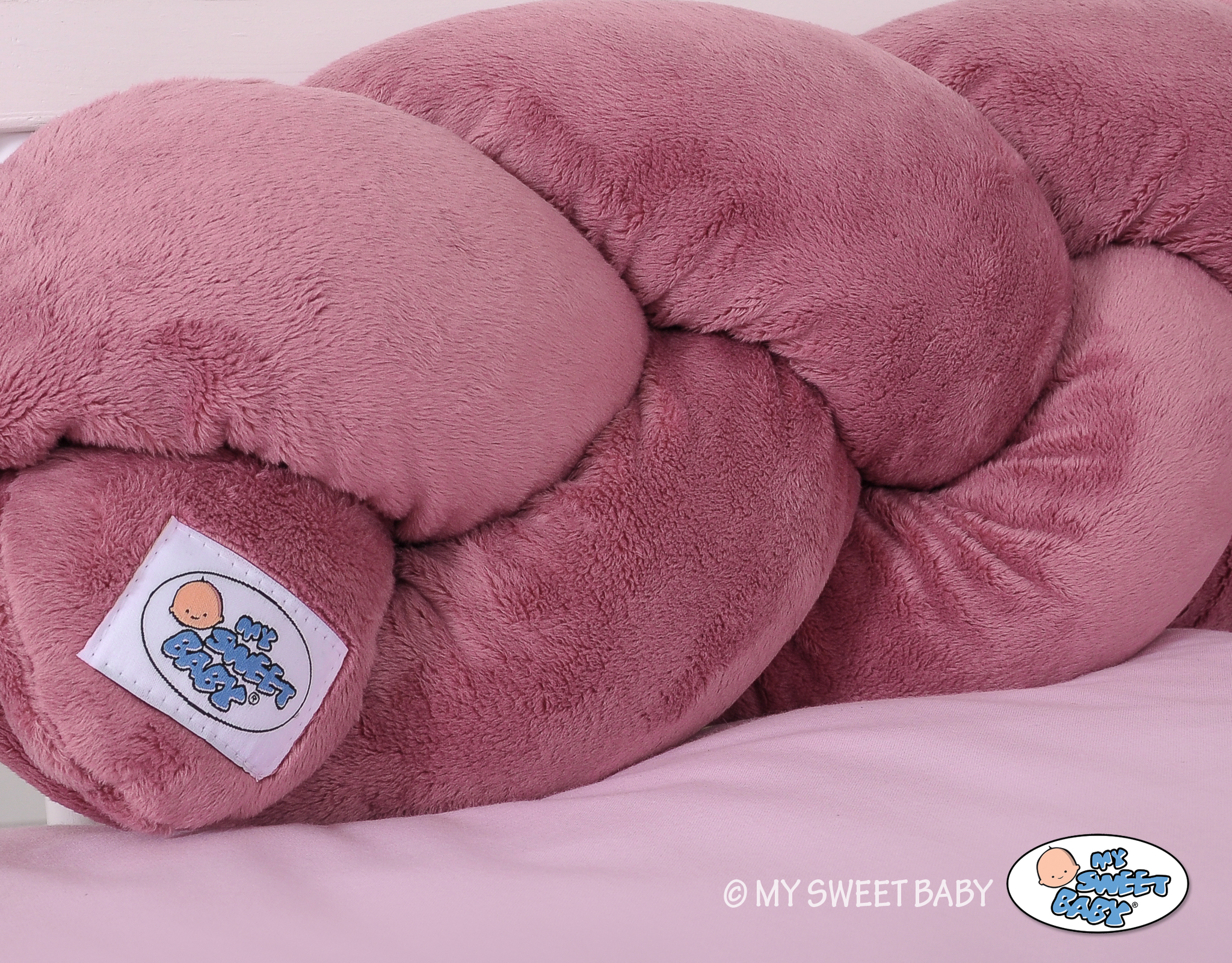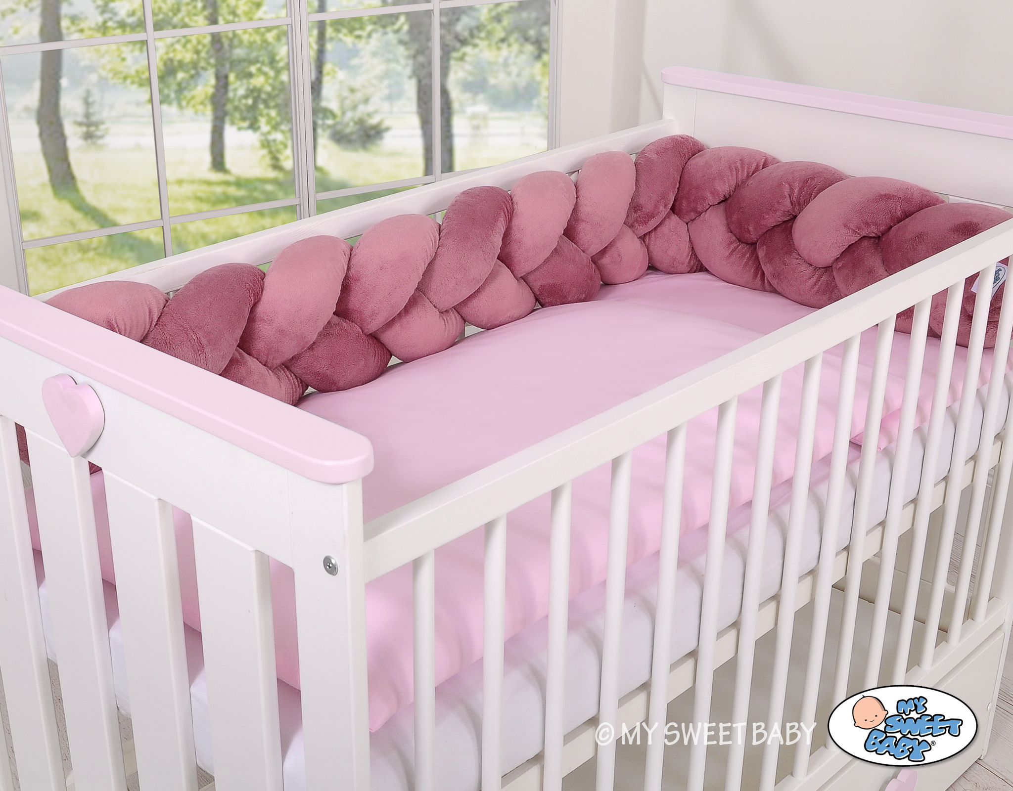 Kleinbaby.nl » Gevlochten Collectie » Gevlochten Bedomrander » Gevlochten Box-Bedbumper Ledikant 180 cm Stofroze