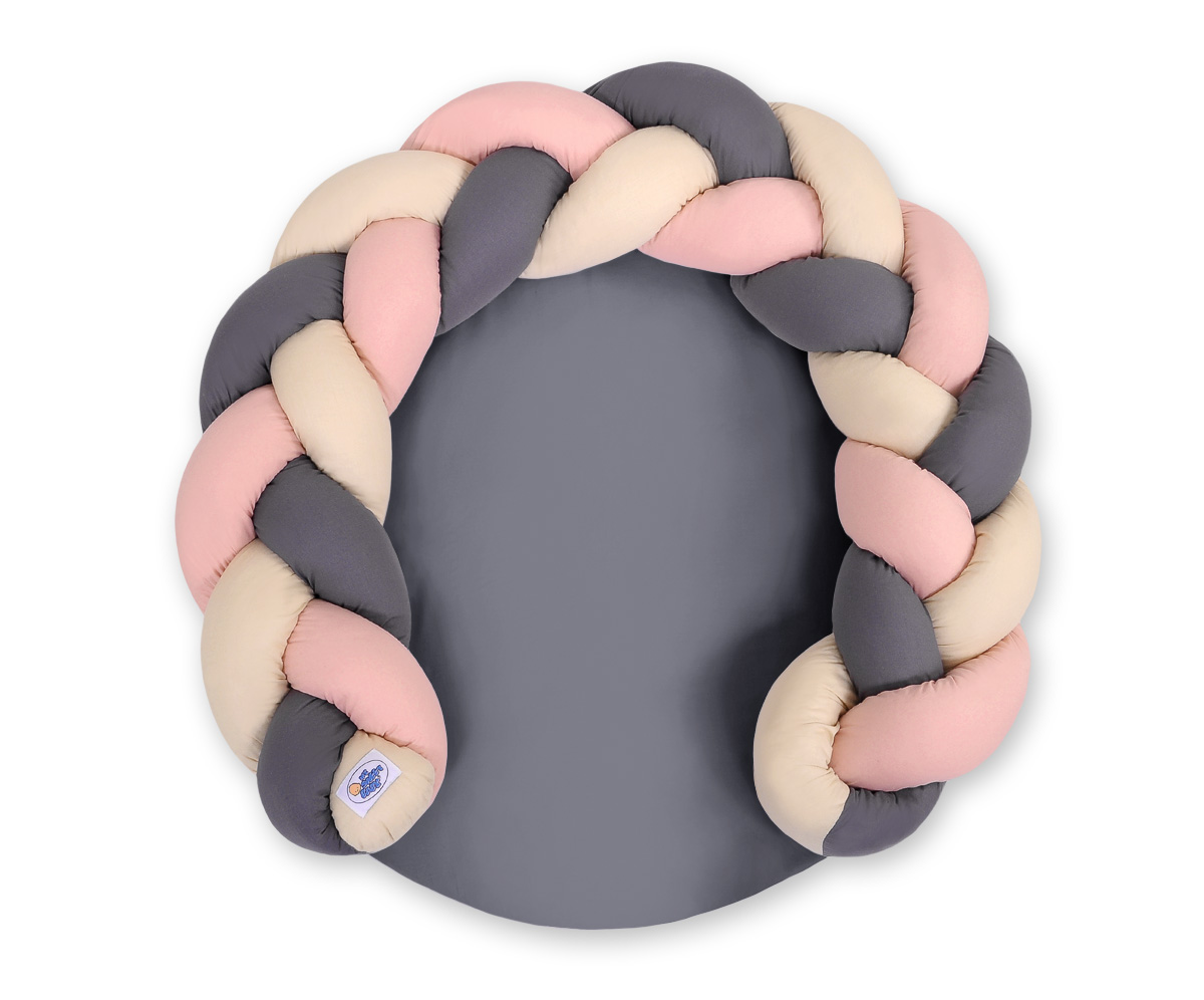 Gevlochten Donut & Bedbumper Speelmat 2 in 1 Beige Antraciet StofrozeGevlochten Donut & Bedbumper Speelmat 2 in 1 Beige Antraciet Stofroze