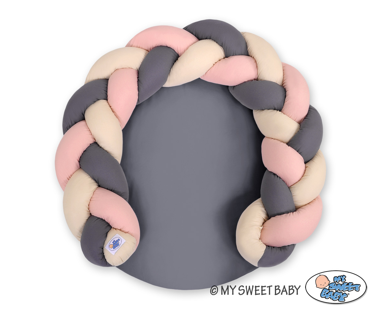 Kleinbaby.nl » Gevlochten Collectie » Gevlochten Donut » Gevlochten Donut & Bedbumper Speelmat 2 in 1 Beige Antraciet Stofroze