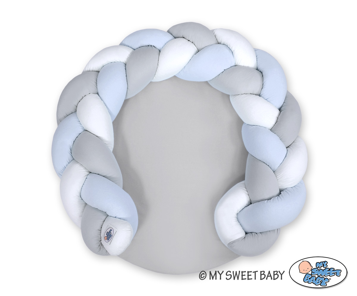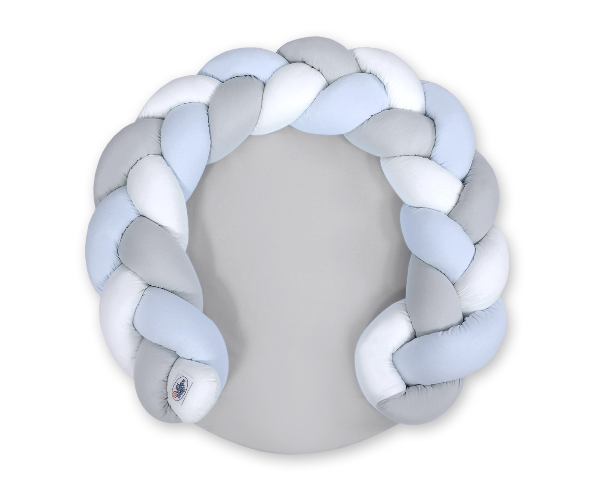Kleinbaby.nl » Gevlochten Collectie » Gevlochten Donut » Gevlochten Donut & Bedomrandung Speelmat 2 in 1 Wit Grijs Blauw