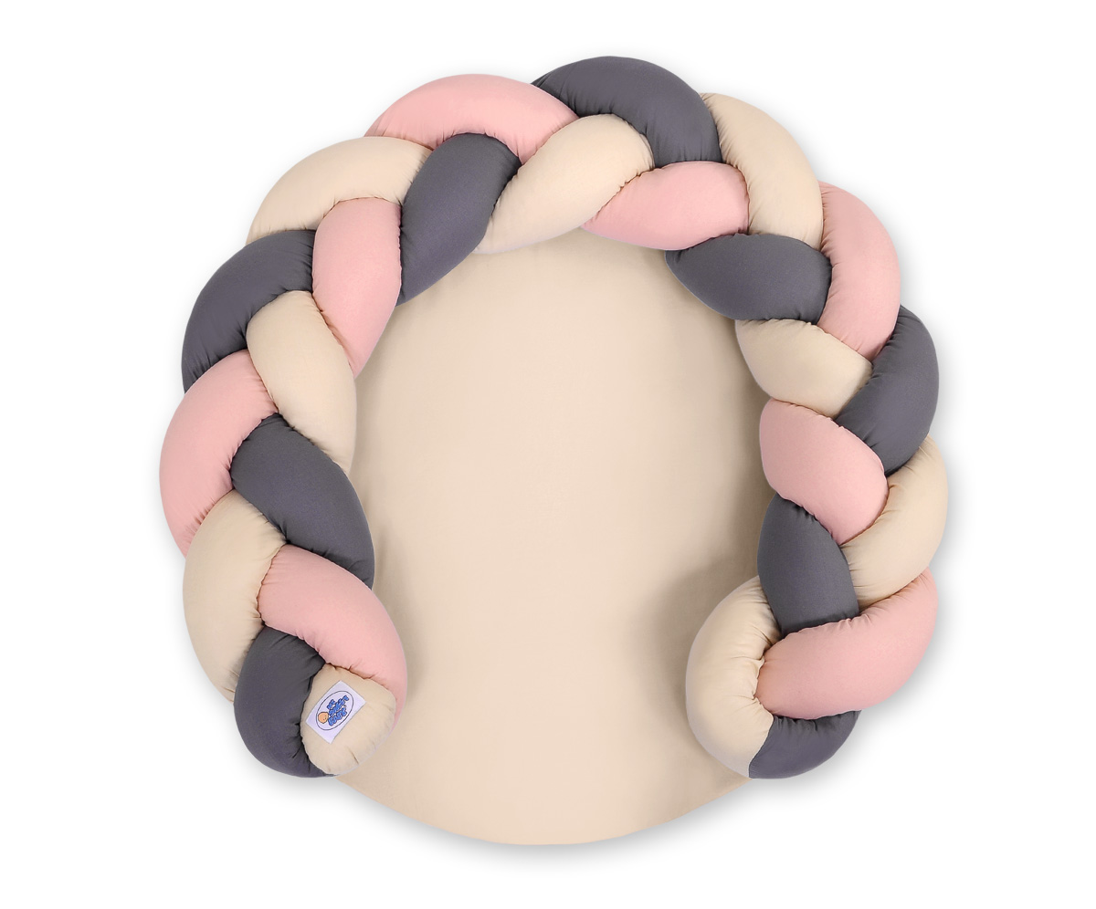 Gevlochten Donut Kussen voor Baby / Speelmat 2 in 1 Beige Antraciet StofrozeGevlochten Donut Kussen voor Baby / Speelmat 2 in 1 Beige Antraciet Stofroze