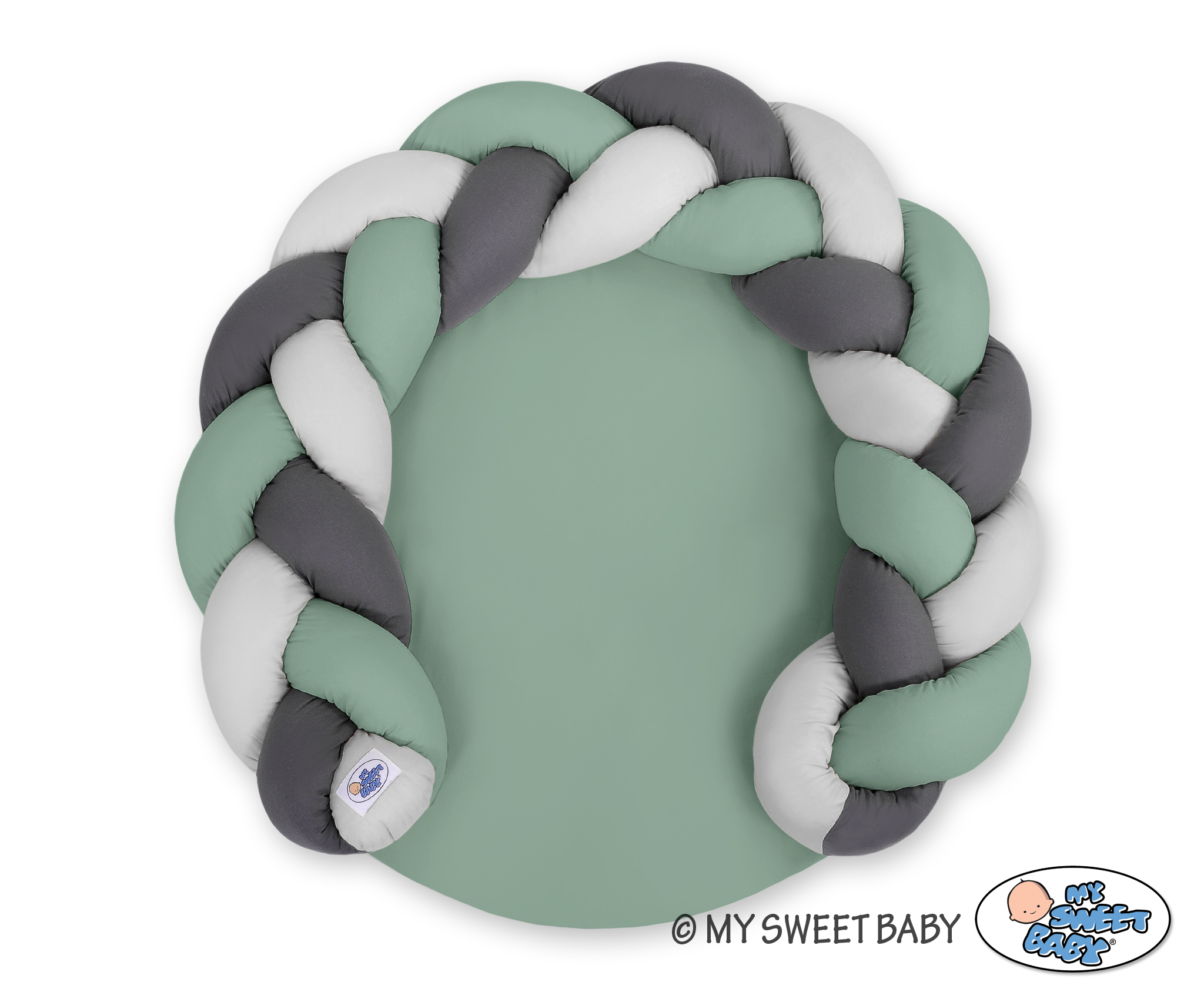 Gevlochten Donut Kussen voor Baby / Speelmat 2 in 1 Grijs Pastelgroen Antraciet