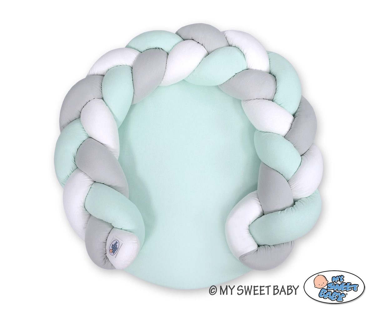 Gevlochten Donut Kussen voor Baby / Speelmat 2 in 1 Mint Wit Grijs