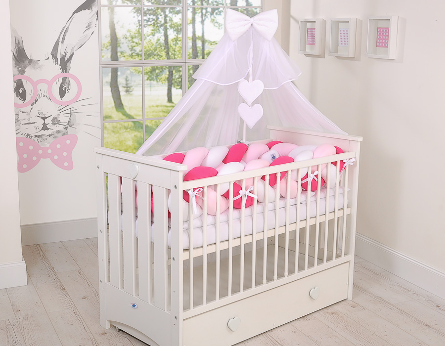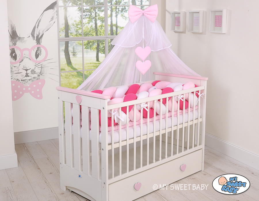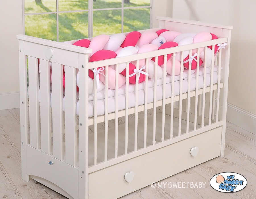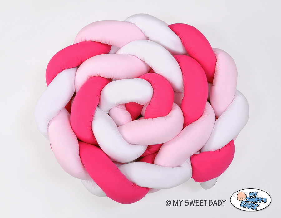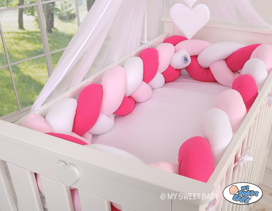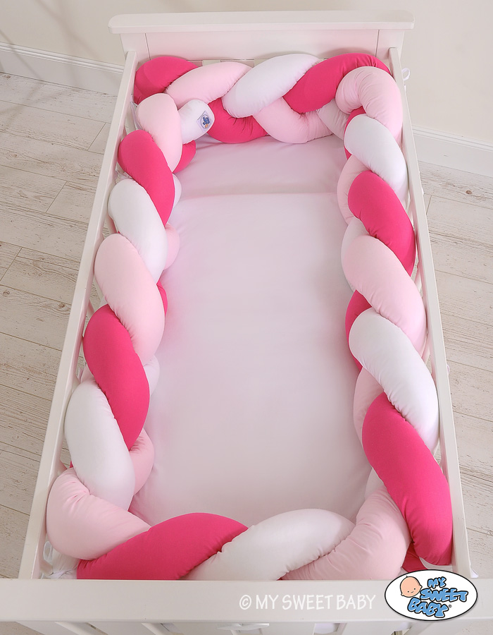 Kleinbaby.nl » My Sweet Baby » Gevlochten Extra Dikke Lange Bedbumper voor Ledikant XXL 3,6 m Roze Wit
