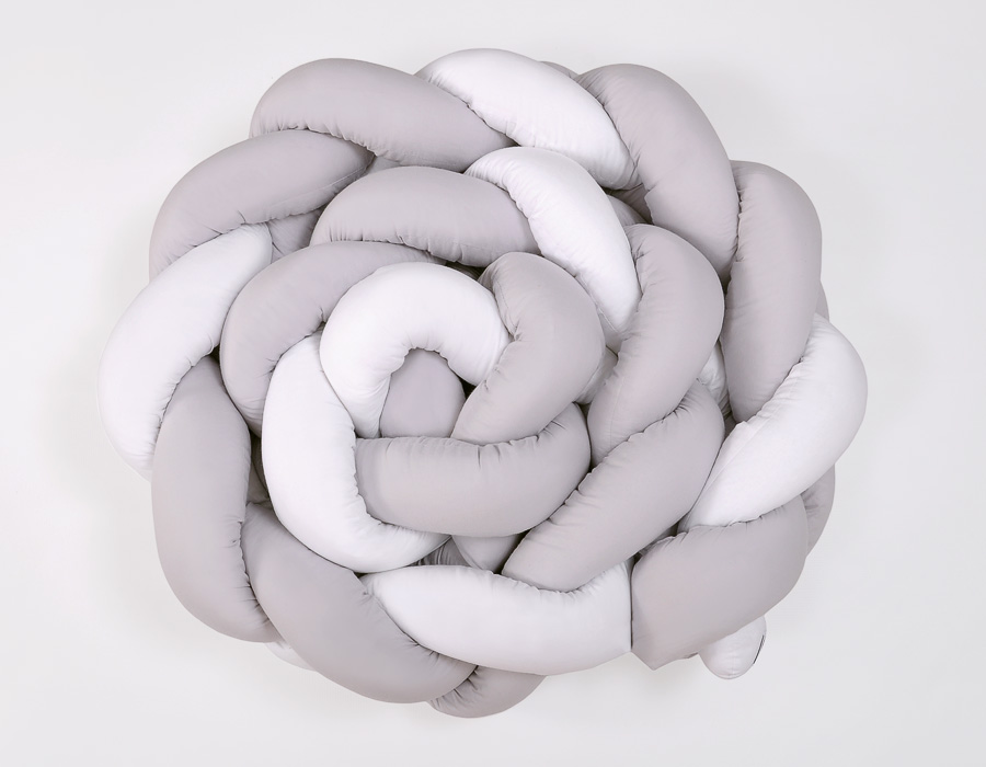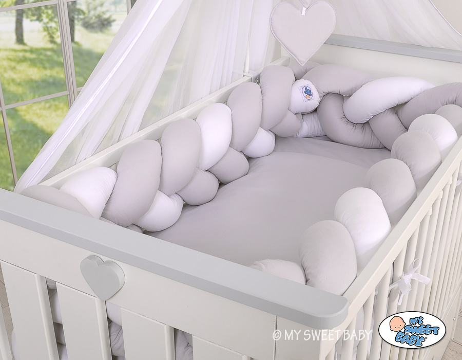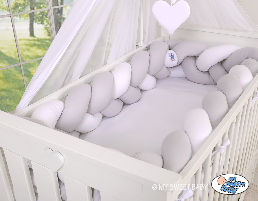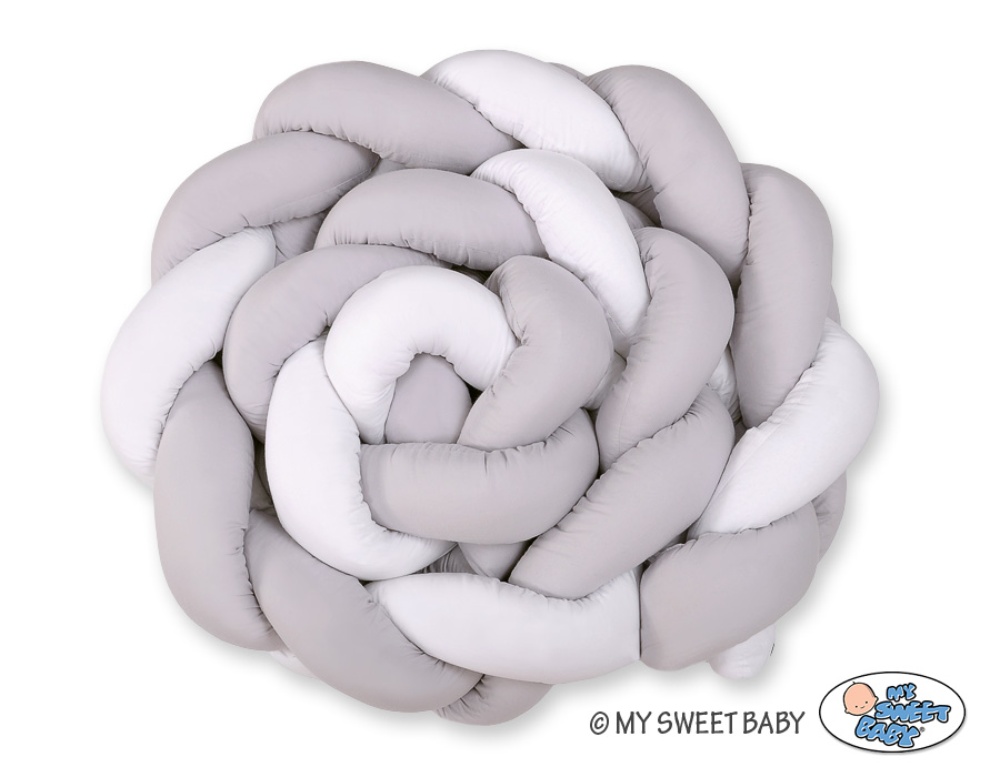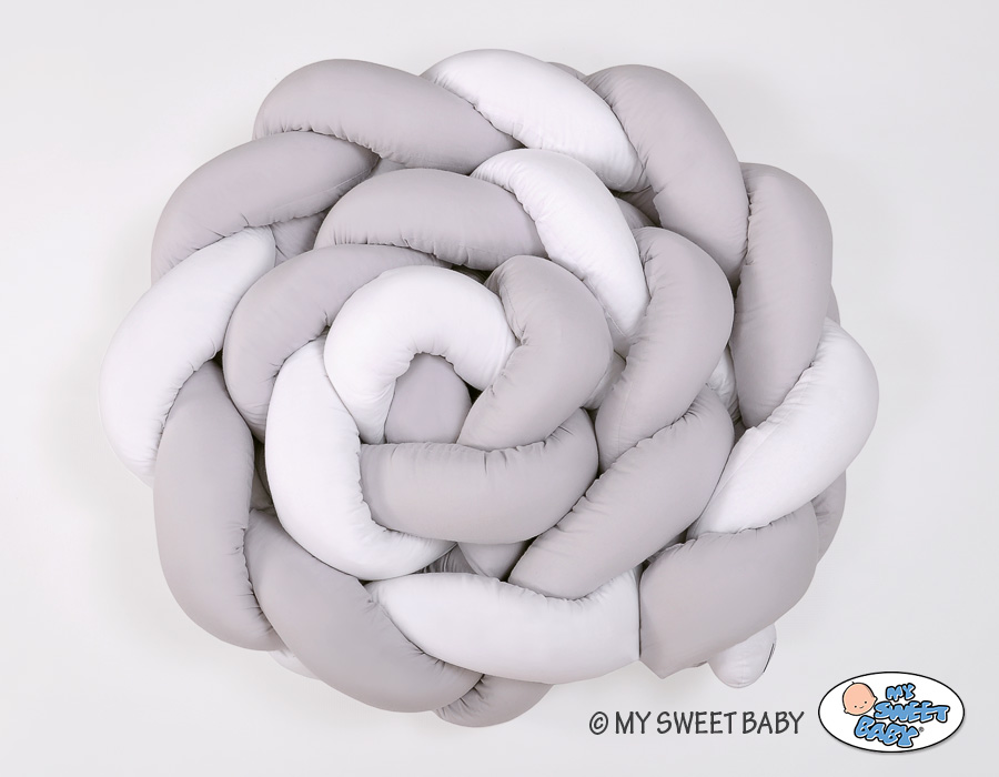 Kleinbaby.nl » Gevlochten Collectie » Gevlochten Bedbumper » Gevlochten Extra Dikke Lange Bedbumper voor Ledikant XXL 3,6 m Wit Grijs