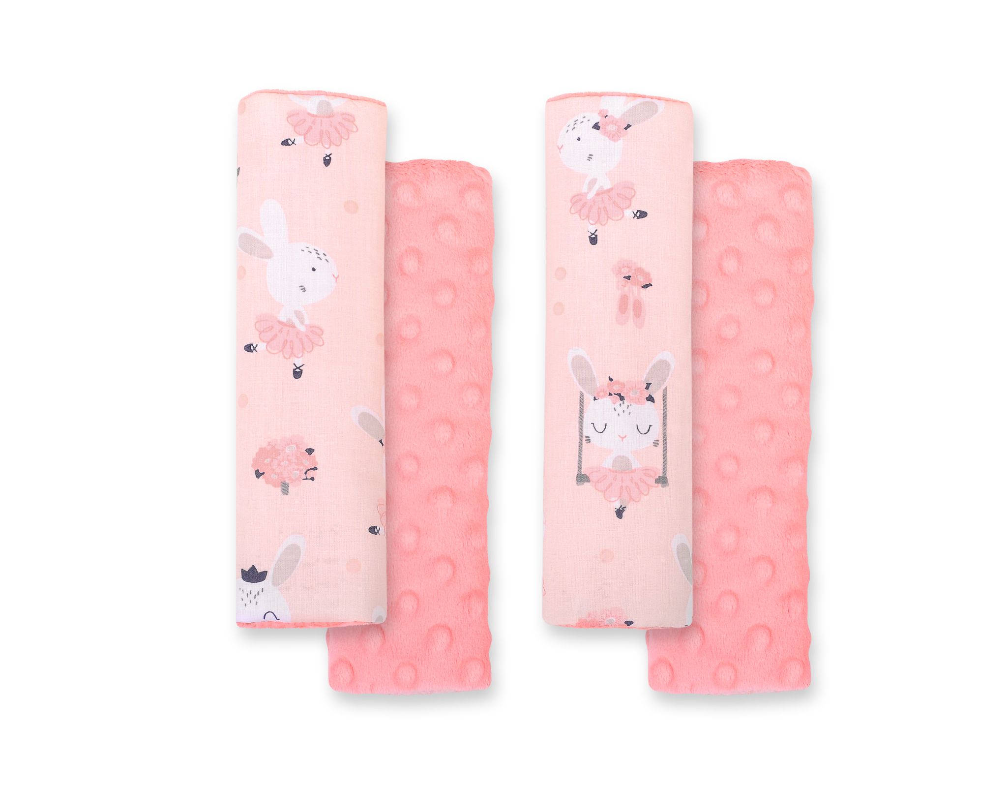 Gemaakt van 100% katoen en zacht aanvoelend 'minky' fleece. Met de klittenbandsluiting kunnen ze gemakkelijk om de veiligheidsgordel worden gewikkeld en het bieden ze het kind comfort.
