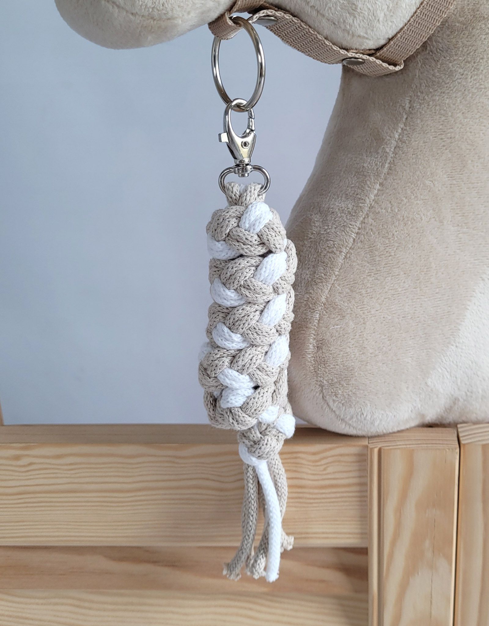 Ook inbegrepen in de set is een hoogwaardig, met de hand gemaakt, zacht paardenlijn voor de Hobby Horse. Het paardenlijn is zorgvuldig gevlochten van stevig, dubbel gevlochten katoenen touw met een diameter van 5 mm. Het  paardenlijn is comfortabel in gebruik, veroorzaakt geen schaafwonden en is niet allergeen. De karabijnhaak is gemaakt van zilverkleurig metaal.