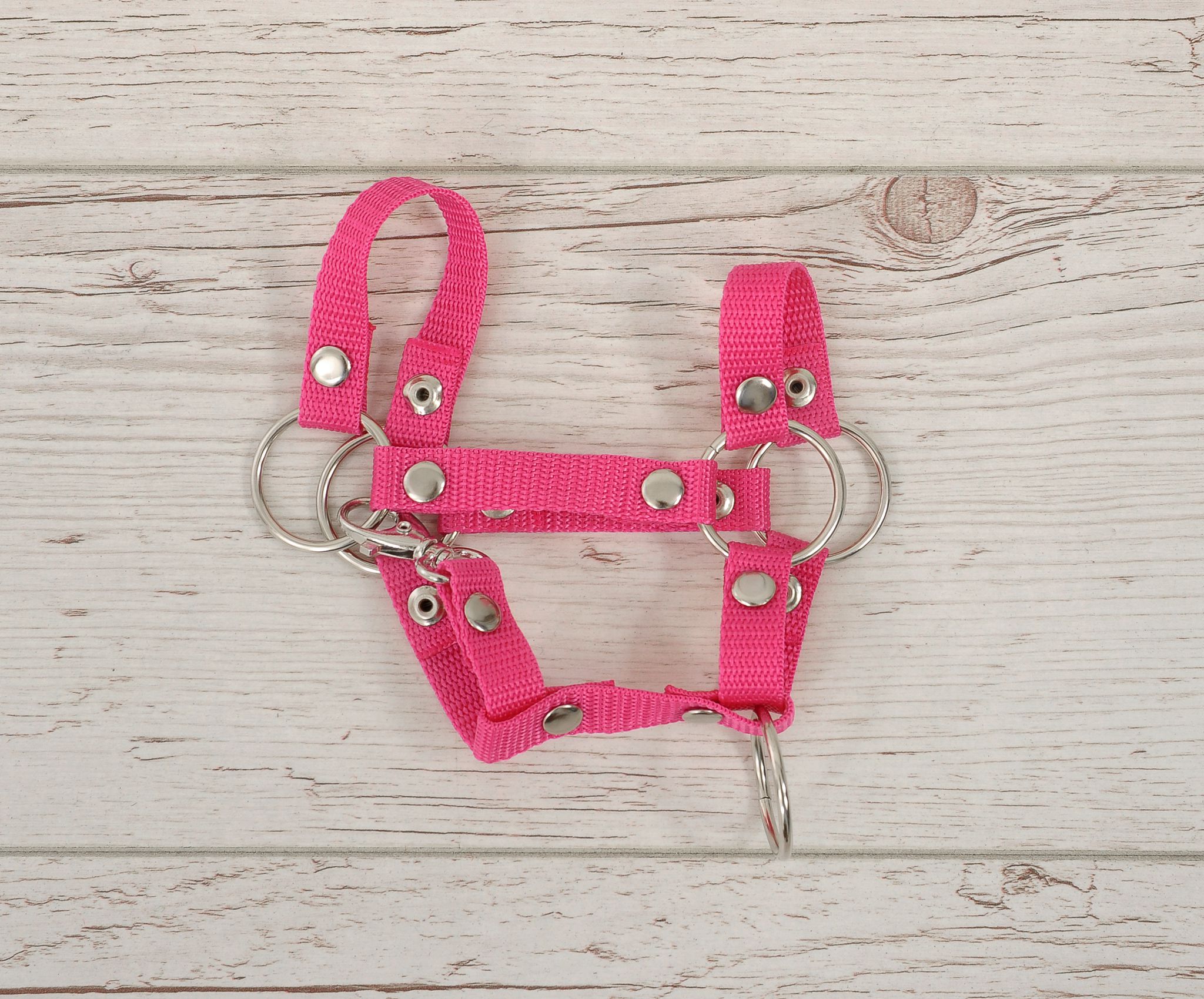 Een praktische en duurzame halster voor het hobbypaard. Gemaakt van hoogwaardige singelband van 1,5 cm breed. Verstelbare gesp voor een perfecte pasvorm op het paard. Eenvoudige sluiting met karabijnhaak. Metalen elementen van de halster, zoals de gespen, metalen ringen, gesp voor aanpassing en karabijnhaaksluiting in zilverkleur. Allemaal elegant en praktisch. De halster is gemakkelijk te hanteren, stevig en vuilafstotend. Er worden veel modieuze kleuren aangeboden, die perfect kunnen worden afgestemd op onze hobbypaarden.