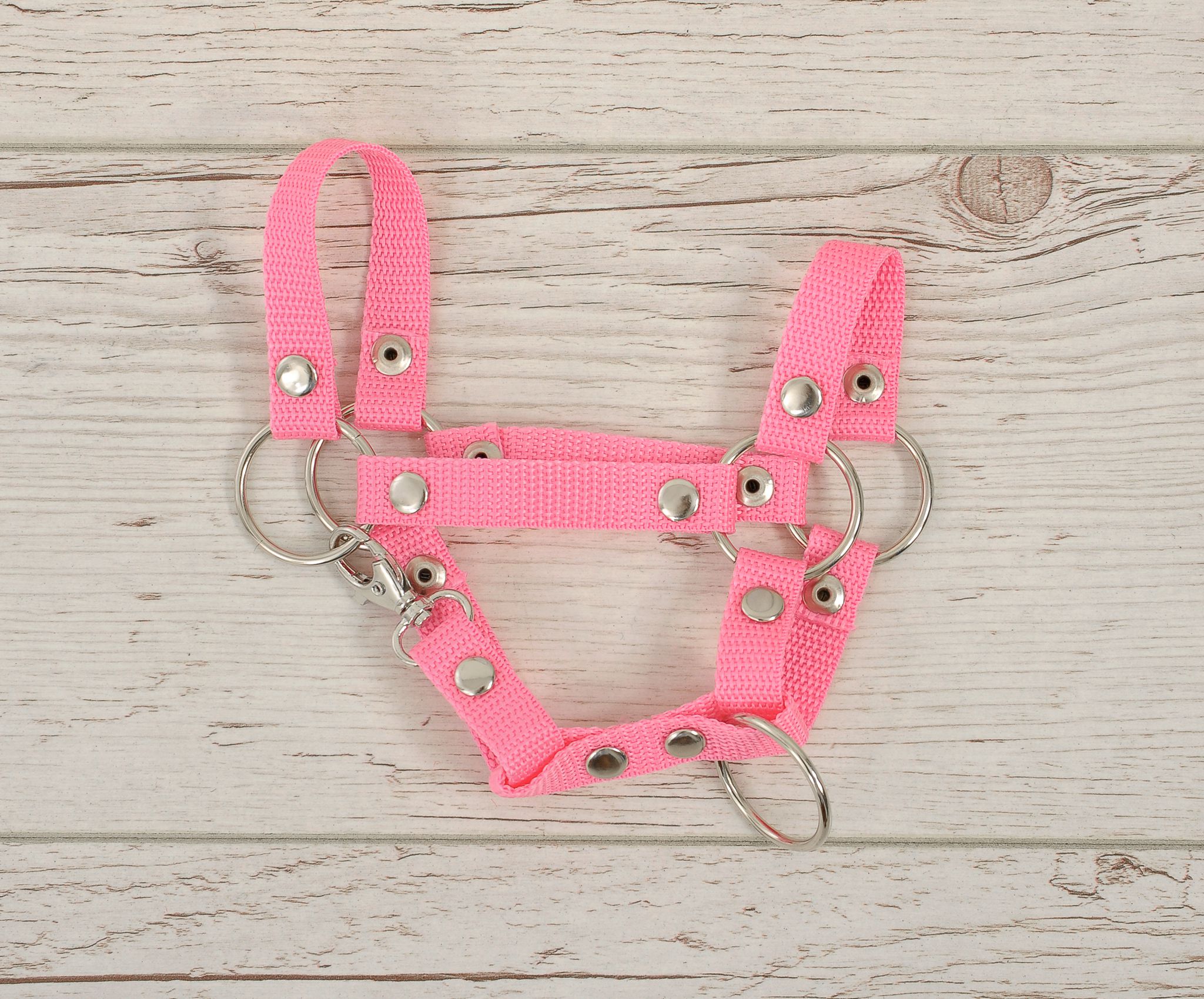 Een praktische en duurzame halster voor het hobbypaard. Gemaakt van hoogwaardige singelband van 1,5 cm breed. Verstelbare gesp voor een perfecte pasvorm op het paard. Eenvoudige sluiting met karabijnhaak. Metalen elementen van de halster, zoals de gespen, metalen ringen, gesp voor aanpassing en karabijnhaaksluiting in zilverkleur. Allemaal elegant en praktisch. De halster is gemakkelijk te hanteren, stevig en vuilafstotend. Er worden veel modieuze kleuren aangeboden, die perfect kunnen worden afgestemd op onze hobbypaarden.