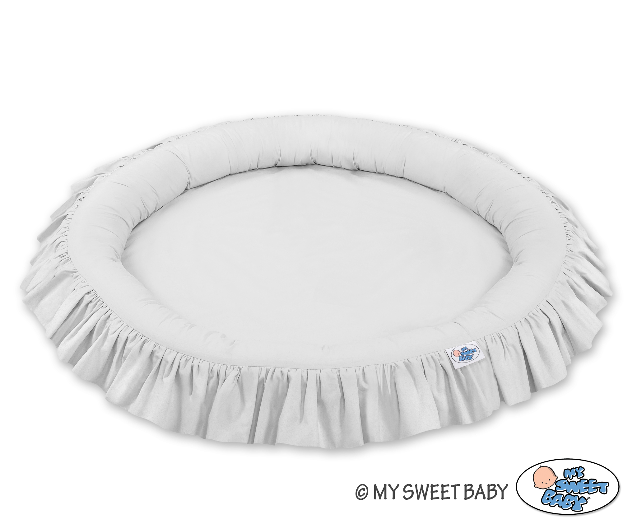 Prachtig nest met een volant. Een functioneel en praktisch nest om in te spelen. Het nest is ideaal als een plaats om te spelen, of als een vloernest onder de katoenen luifel. Het nest met volant kan vanaf de geboorte gebruikt worden als een veilige rustplaats. De zachte randen bieden een veilige omgeving voor de baby. Het is perfect als speelplek met speelgoed. In combinatie met de katoenen luifel creëert het nest een prachtige speeltent.