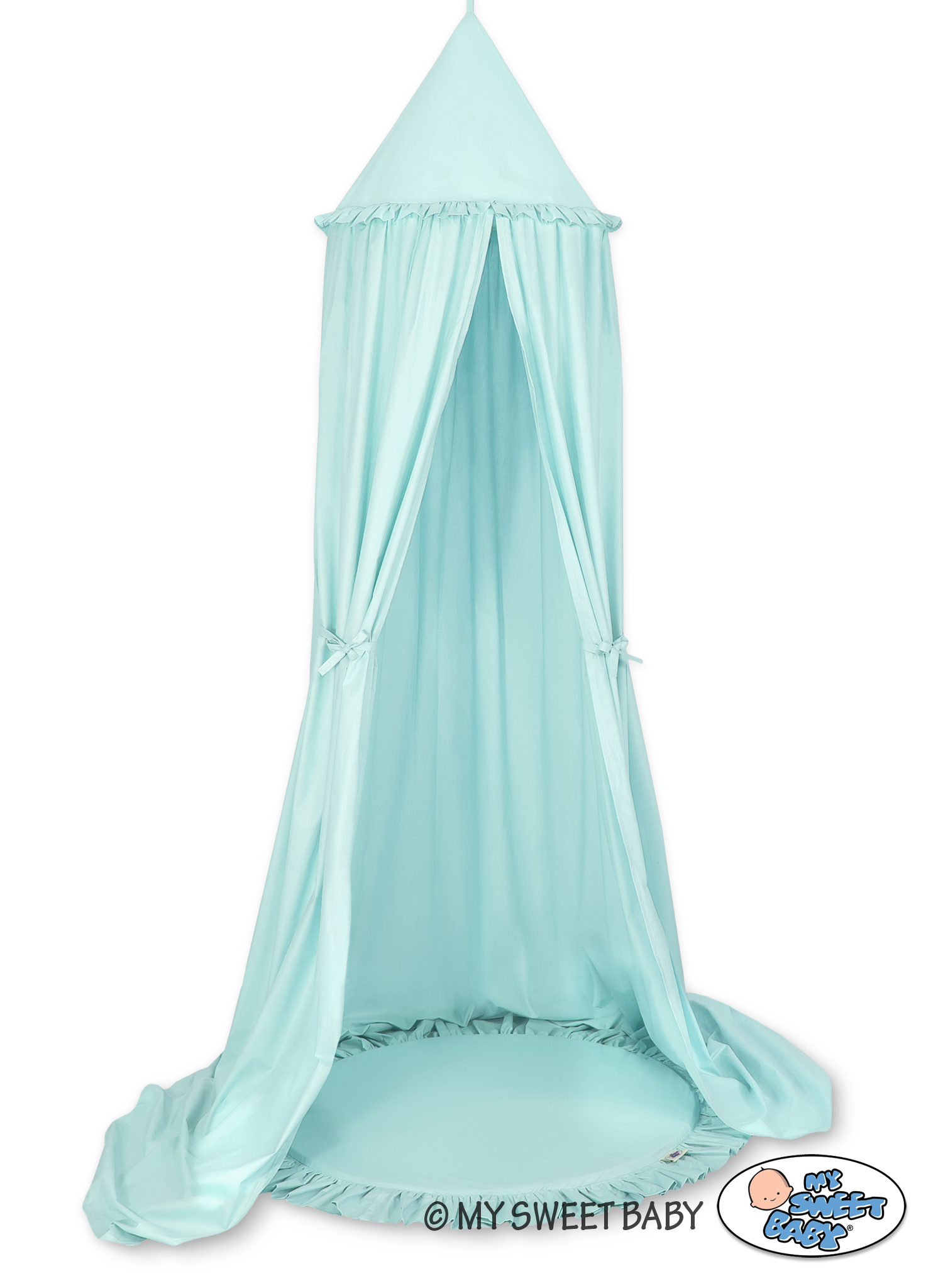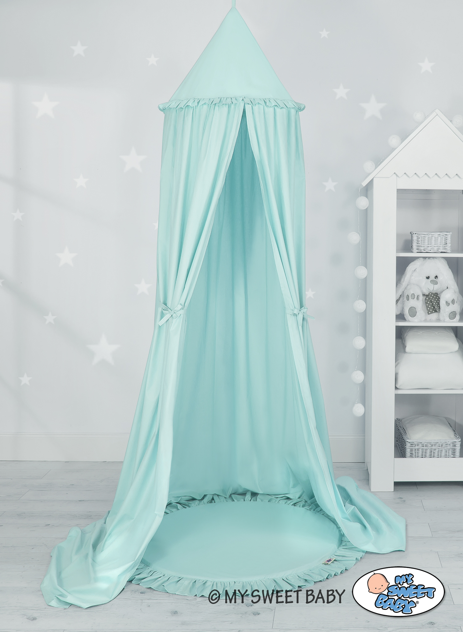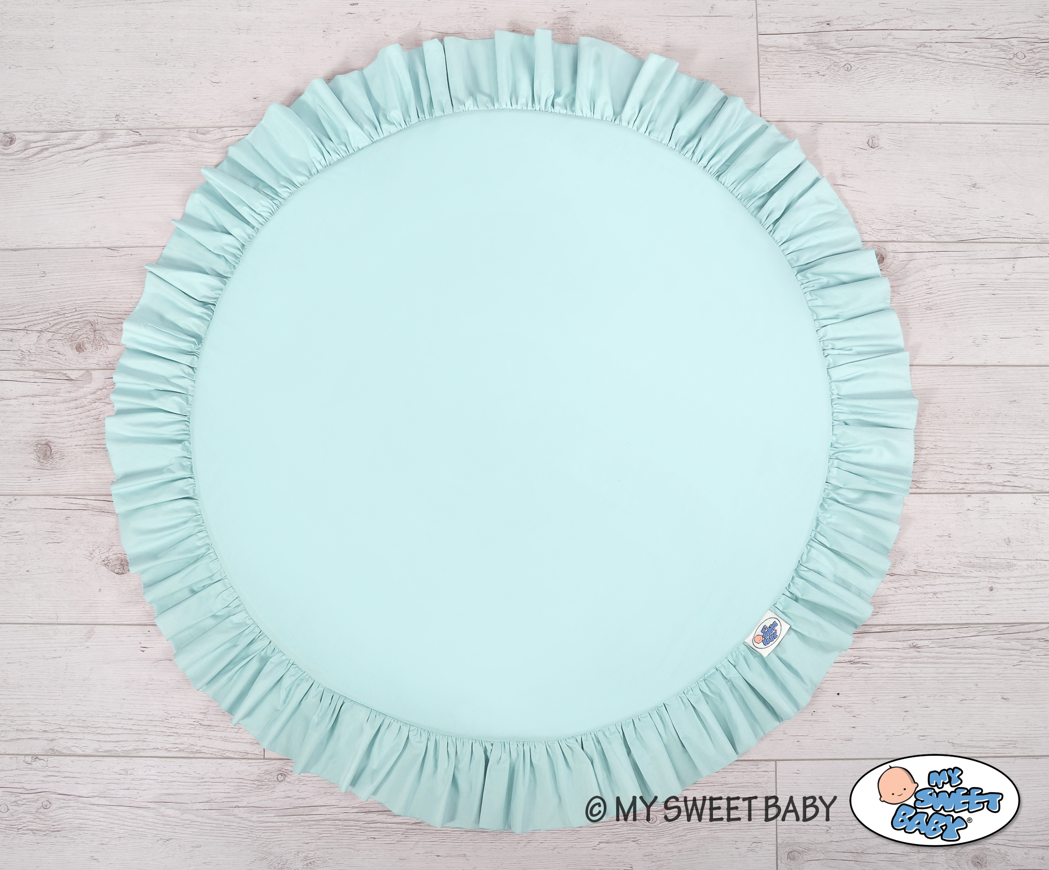 Een speelmat met ruche. Deze kan worden gebruikt als tapijt, speelmat of als vloermat voor de katoenen luifel. Deze speelmat kan vanaf de geboorte worden gebruikt als een plaats om te rusten of om op de buik te spelen. Het heeft een zachte vulling die de baby perfect isoleert van de harde en koude vloer. De hoes is gemaakt van Oekotex-gecertificeerd 100% katoen. De bodem van de speelmat is gemaakt van een modern, anti-allergie en gecertificeerd materiaal. De bodem kan afgenomen en gewassen worden.