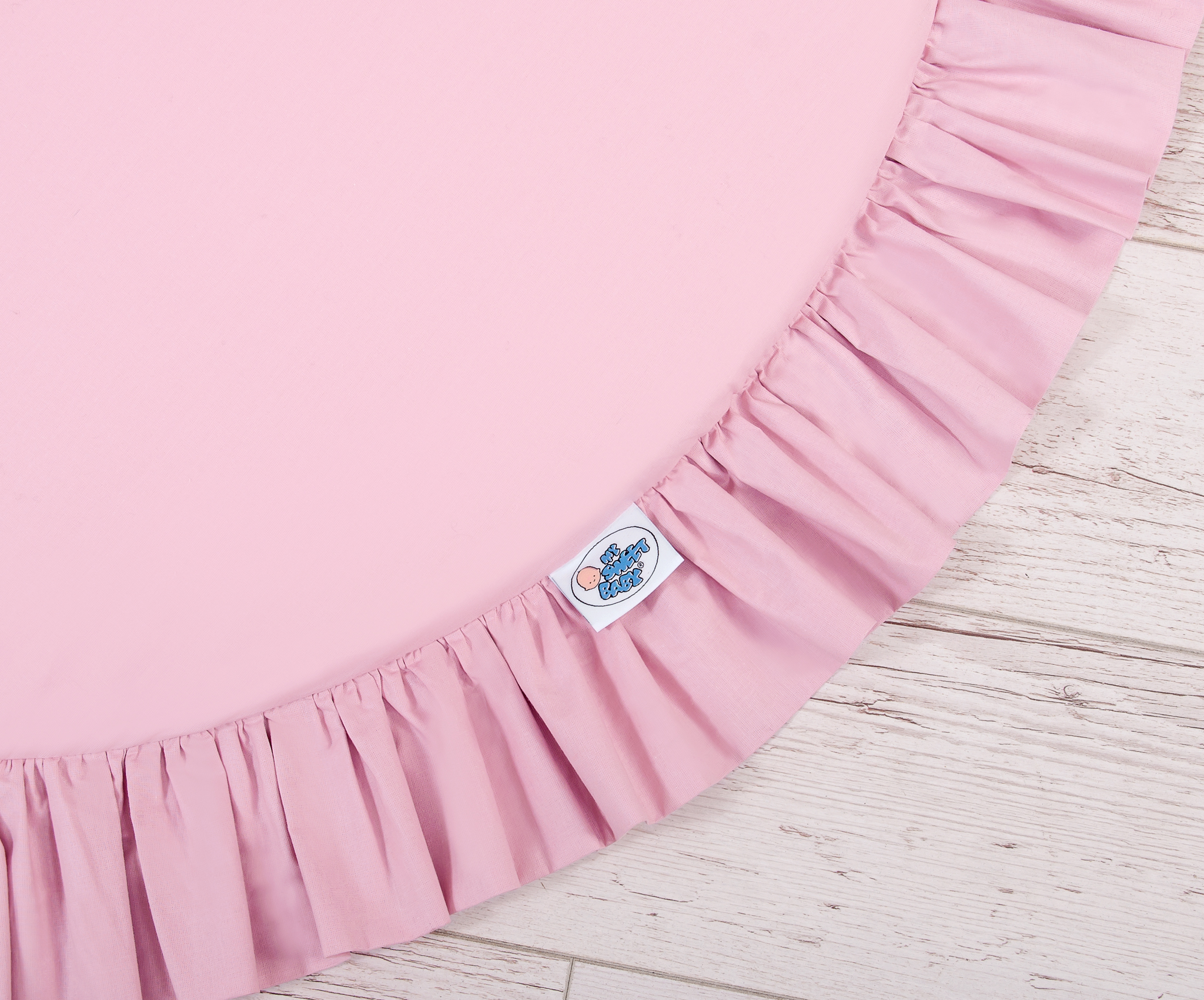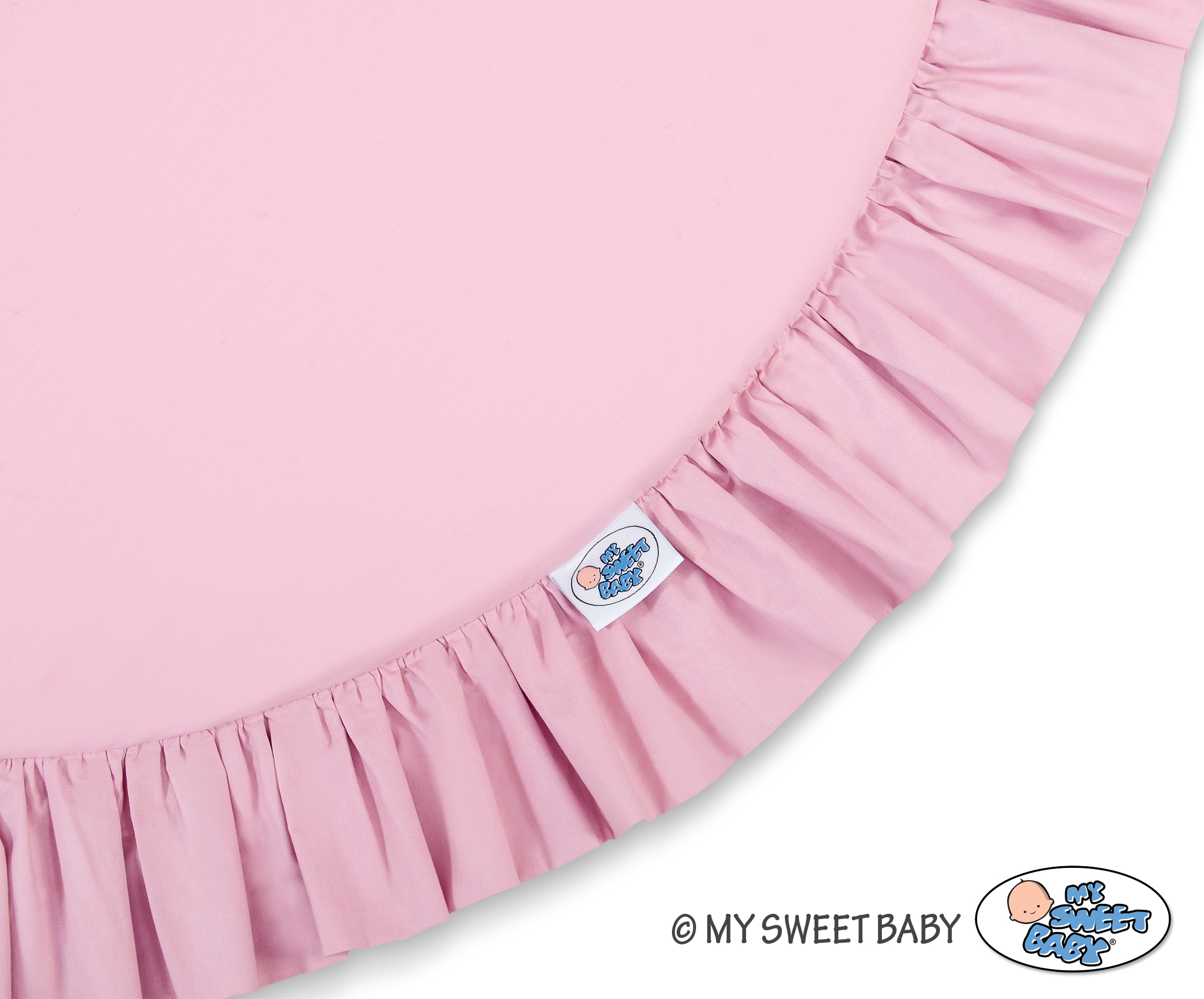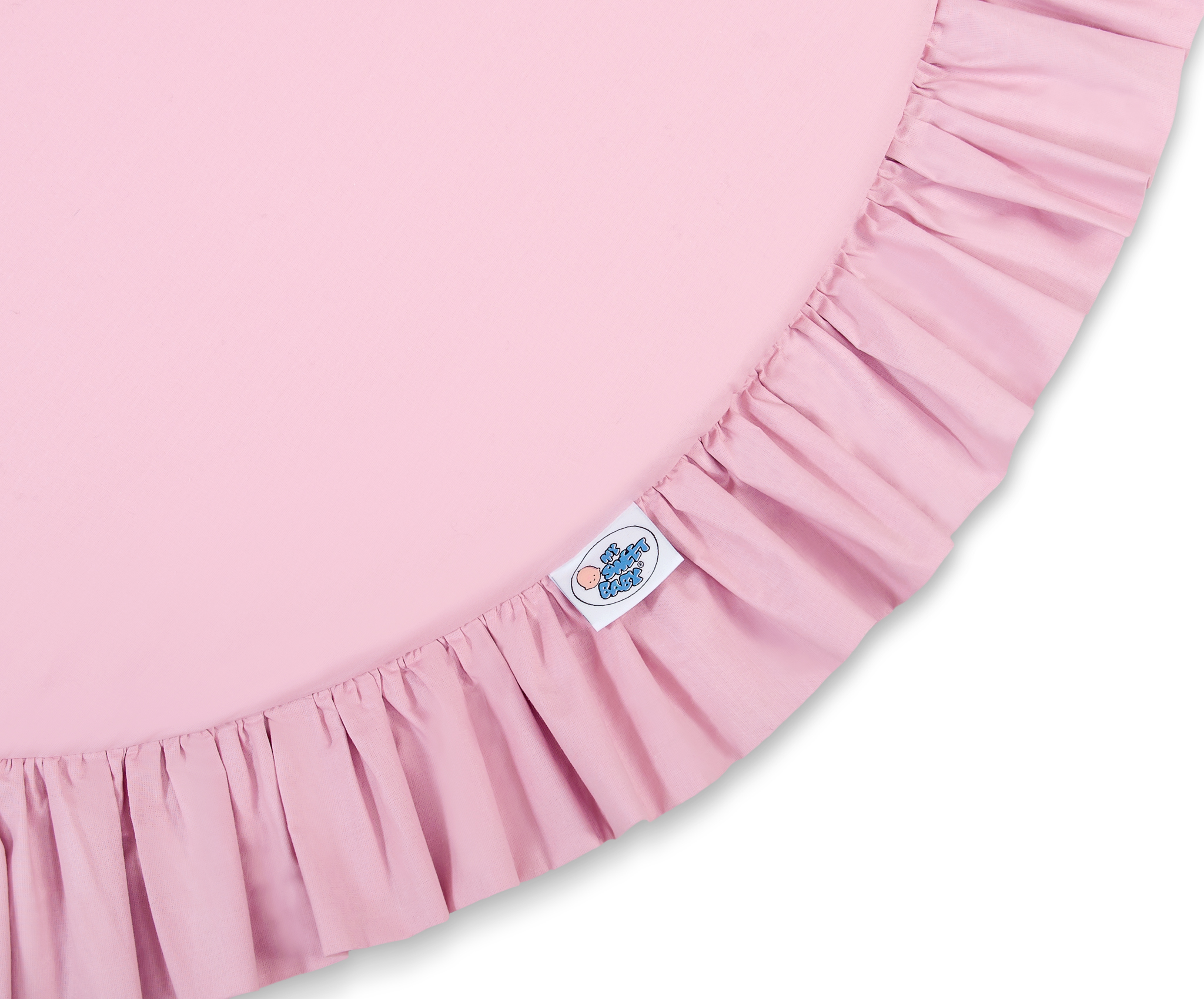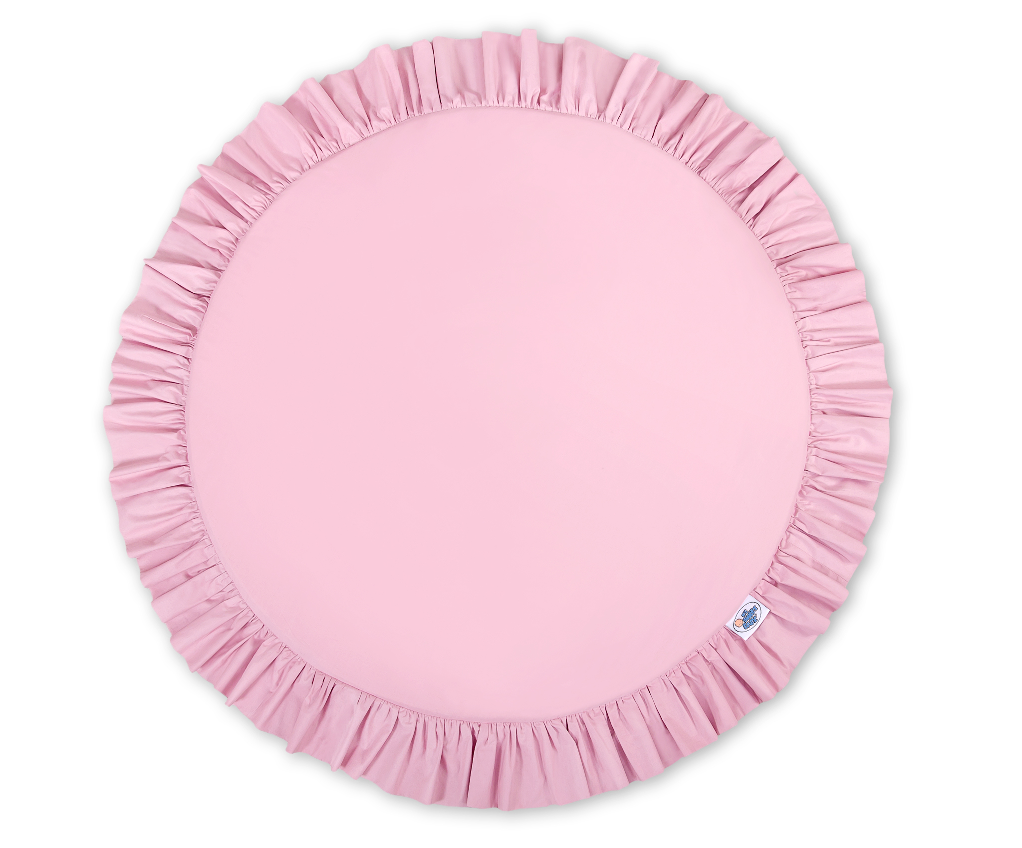 Een speelmat met ruche. Deze kan worden gebruikt als tapijt, speelmat of als vloermat voor de katoenen luifel. Deze speelmat kan vanaf de geboorte worden gebruikt als een plaats om te rusten of om op de buik te spelen. Het heeft een zachte vulling die de baby perfect isoleert van de harde en koude vloer. De hoes is gemaakt van Oekotex-gecertificeerd 100% katoen. De bodem van de speelmat is gemaakt van een modern, anti-allergie en gecertificeerd materiaal. De bodem kan afgenomen en gewassen worden.