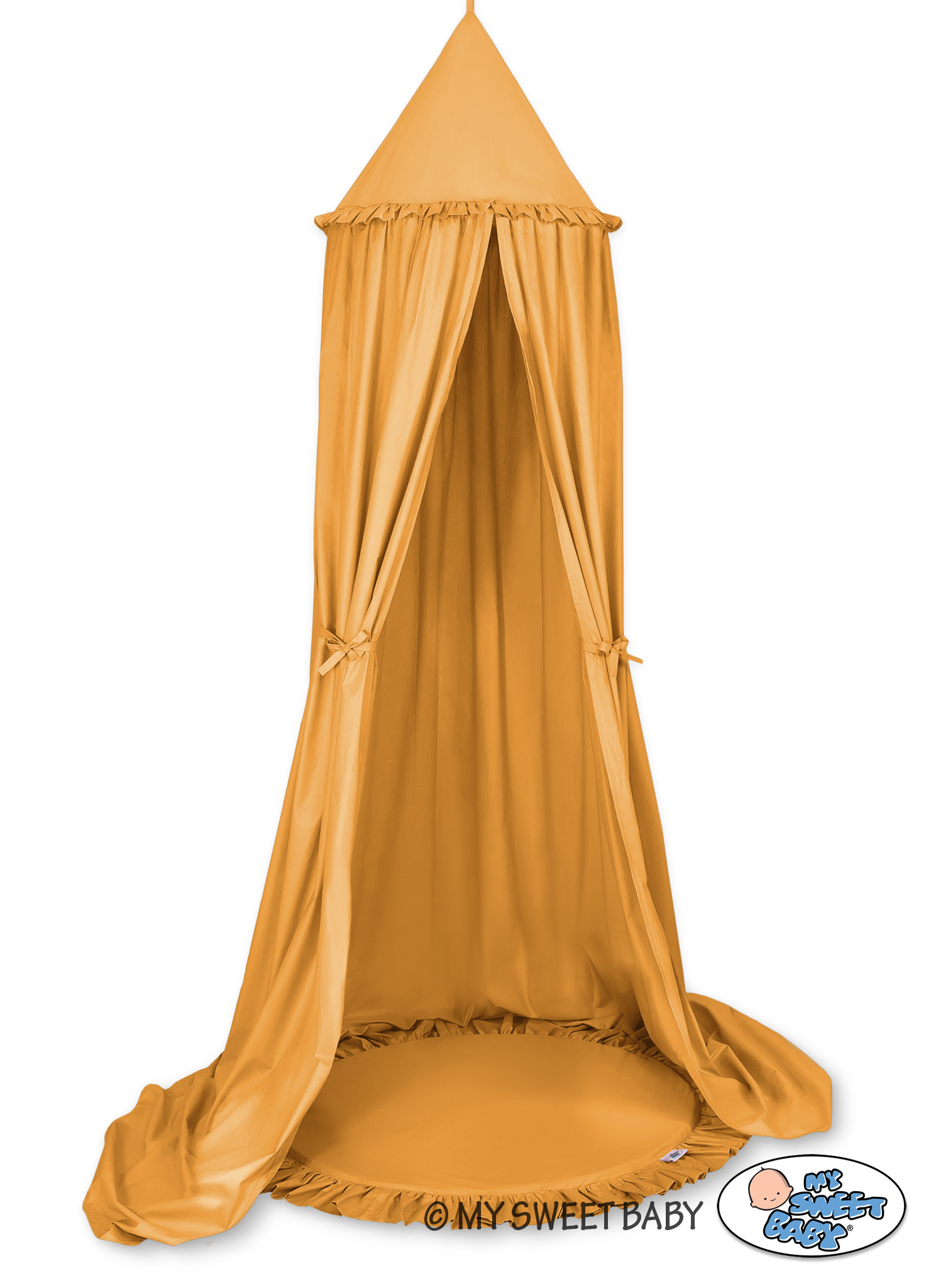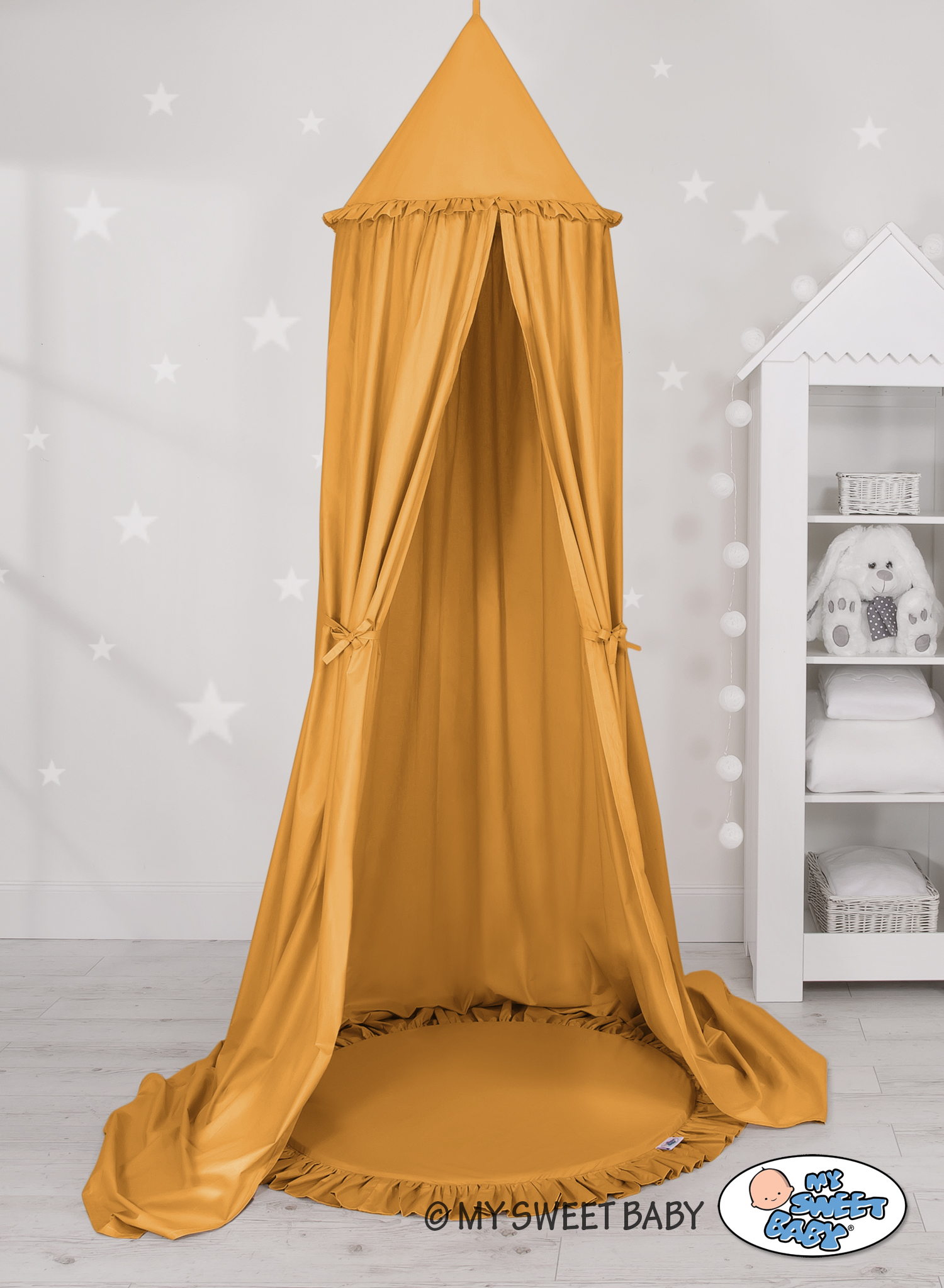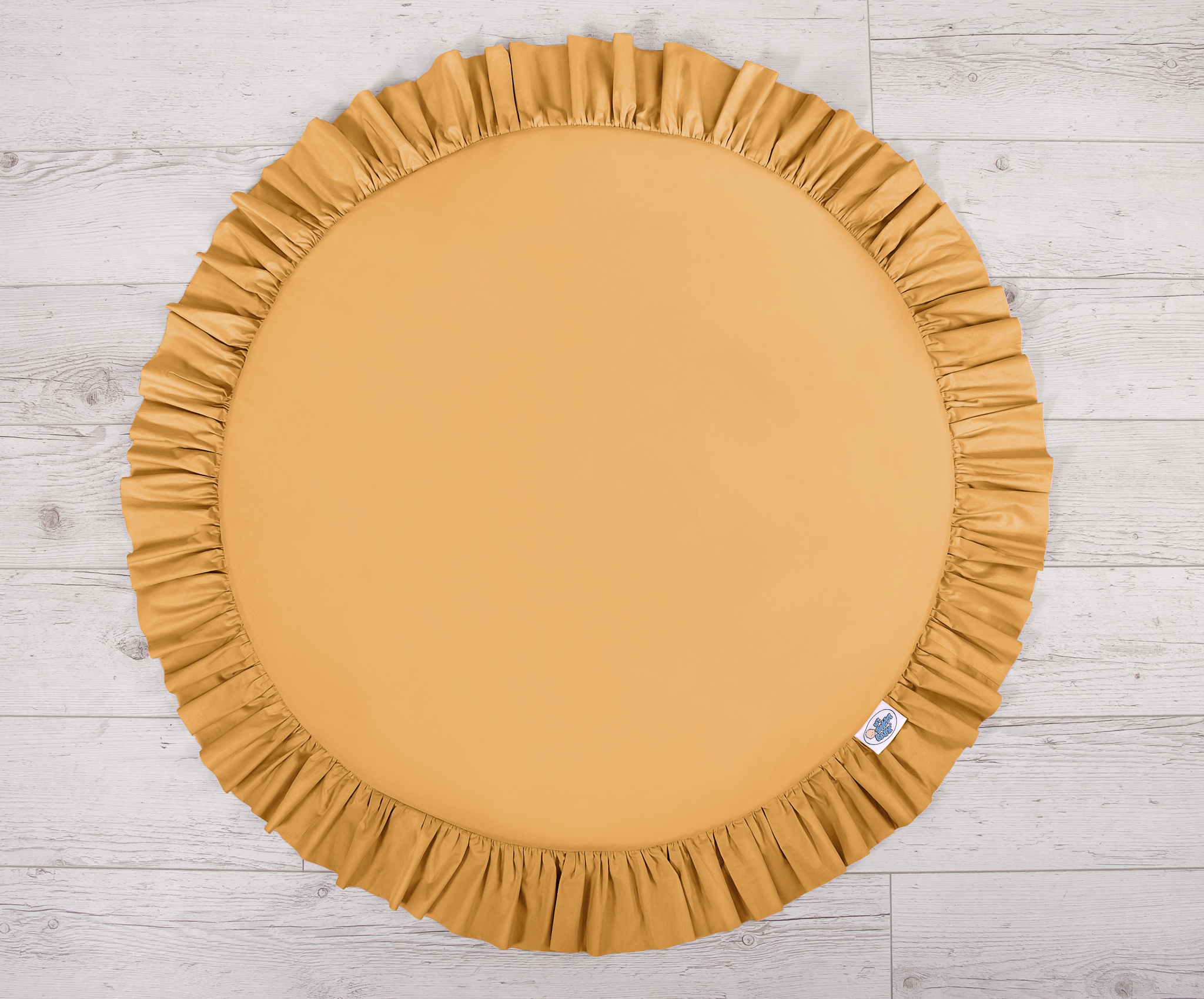 Een speelmat met ruche. Deze kan worden gebruikt als tapijt, speelmat of als vloermat voor de katoenen luifel. Deze speelmat kan vanaf de geboorte worden gebruikt als een plaats om te rusten of om op de buik te spelen. Het heeft een zachte vulling die de baby perfect isoleert van de harde en koude vloer. De hoes is gemaakt van Oekotex-gecertificeerd 100% katoen. De bodem van de speelmat is gemaakt van een modern, anti-allergie en gecertificeerd materiaal. De bodem kan afgenomen en gewassen worden.