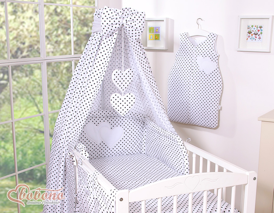 Kleinbaby.nl » Beddengoed voor Ledikant » Beddengoed Set Collectie Harten » Hemeltje van Stof - Harten » Hemel voor Ledikant Katoen - Harten Zwart Polkaprikker