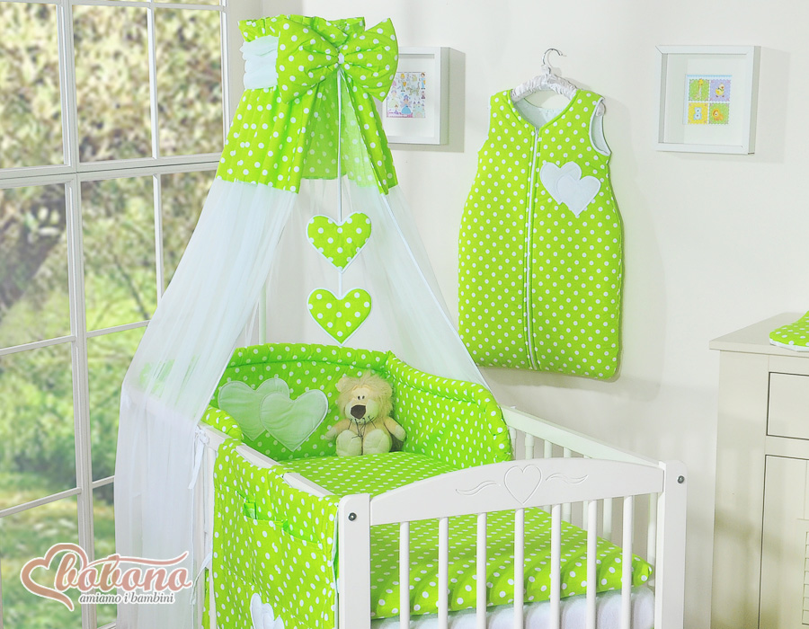 Kleinbaby.nl » Beddengoed voor Ledikant » Beddengoed Set Collectie Harten » Hemeltje van Tule Harten » Hemeltje Ledikant Tule Harten Groen Polkaprikker