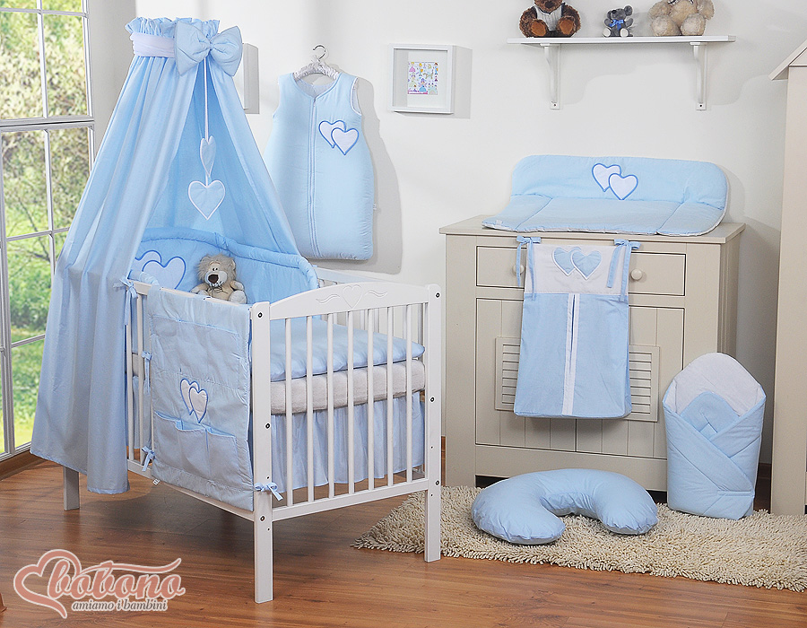 Kleinbaby.nl » Beddengoed voor Ledikant » Beddengoed Set Collectie Harten » Hemeltje van Stof - Harten » Hemeltje van Katoen voor Ledikant - Harten Blauw