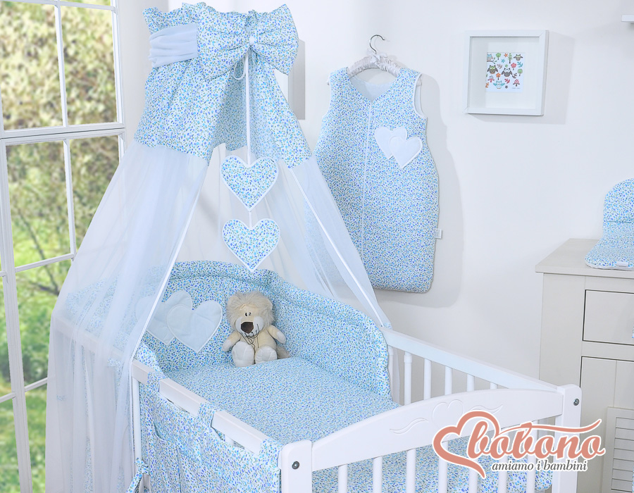 Kleinbaby.nl » Beddengoed voor Ledikant » Beddengoed Set Collectie Harten » Hemeltje van Tule Harten » Hemeltje van Tule voor Babybed - Harten Blauw Bloemenweide Bloemen