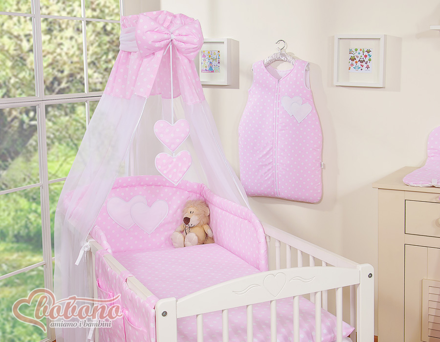 Kleinbaby.nl » Beddengoed voor Ledikant » Beddengoed Set Collectie Harten » Hemeltje van Tule Harten » Hemeltje van Tule voor Babybed - Harten Roze Polkaprikker