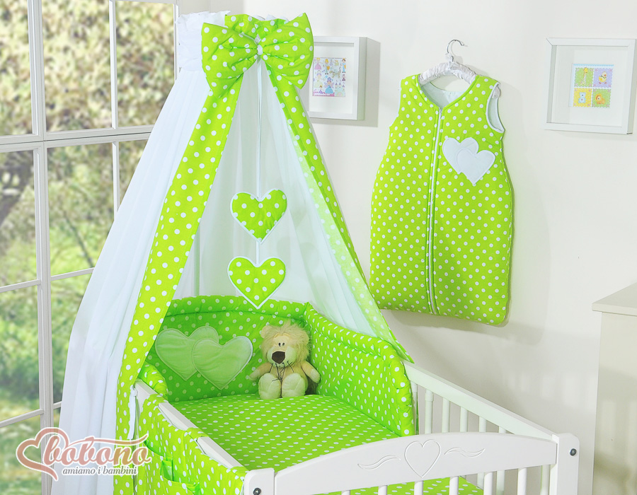 Kleinbaby.nl » Beddengoed voor Ledikant » Beddengoed Set Collectie Harten » Hemeltje van Stof - Harten » Hemeltje voor Ledikant - Harten Groen Polkaprikker