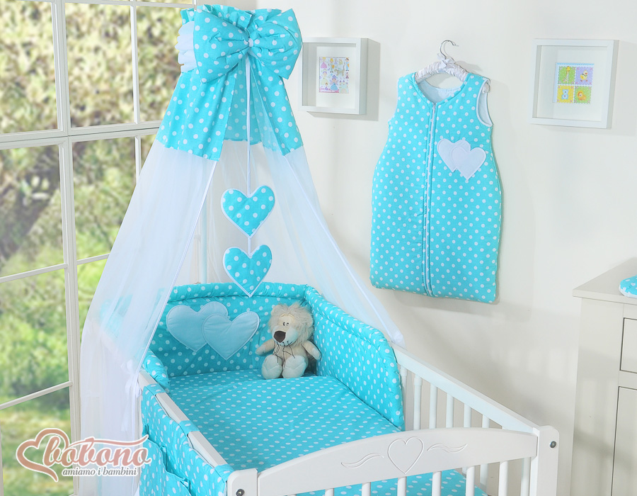 Kleinbaby.nl » Beddengoed voor Ledikant » Beddengoed Set Collectie Harten » Hemeltje van Tule Harten » Hemeltje voor Ledikant Tule - Harten Turkoois Polkaprikker