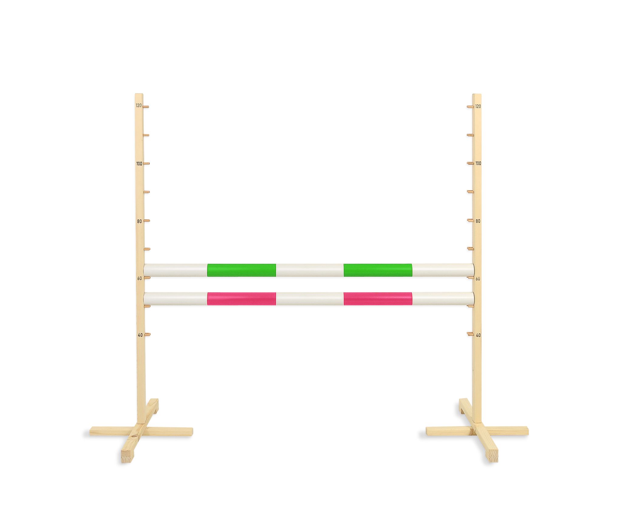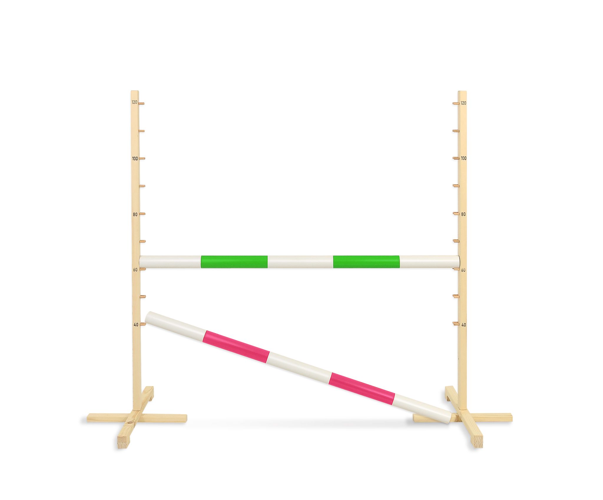 De stang kan worden ingesteld op een hoogte tussen 40 cm en 120 cm, afhankelijk van de lengte en motorische vaardigheden van het kind. De balk is ontworpen om neer te vallen wanneer er met de voet tegenaan wordt gestoten. Er is geen mogelijkheid voor het kind om tijdens de sprong om te vallen.