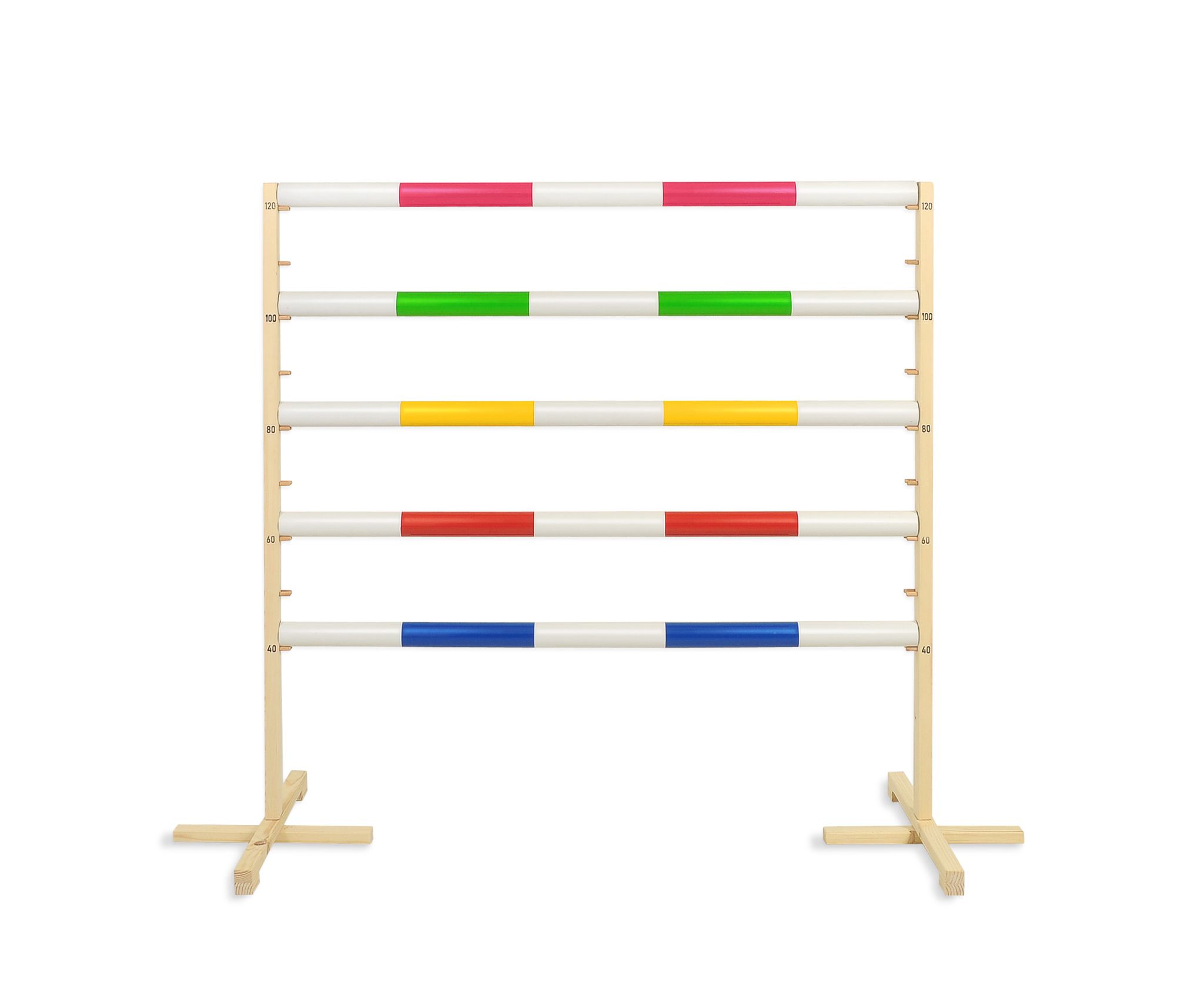 De stang kan worden ingesteld op een hoogte tussen 40 cm en 120 cm, afhankelijk van de lengte en motorische vaardigheden van het kind. De balk is ontworpen om neer te vallen wanneer er met de voet tegenaan wordt gestoten. Er is geen mogelijkheid voor het kind om tijdens de sprong om te vallen.