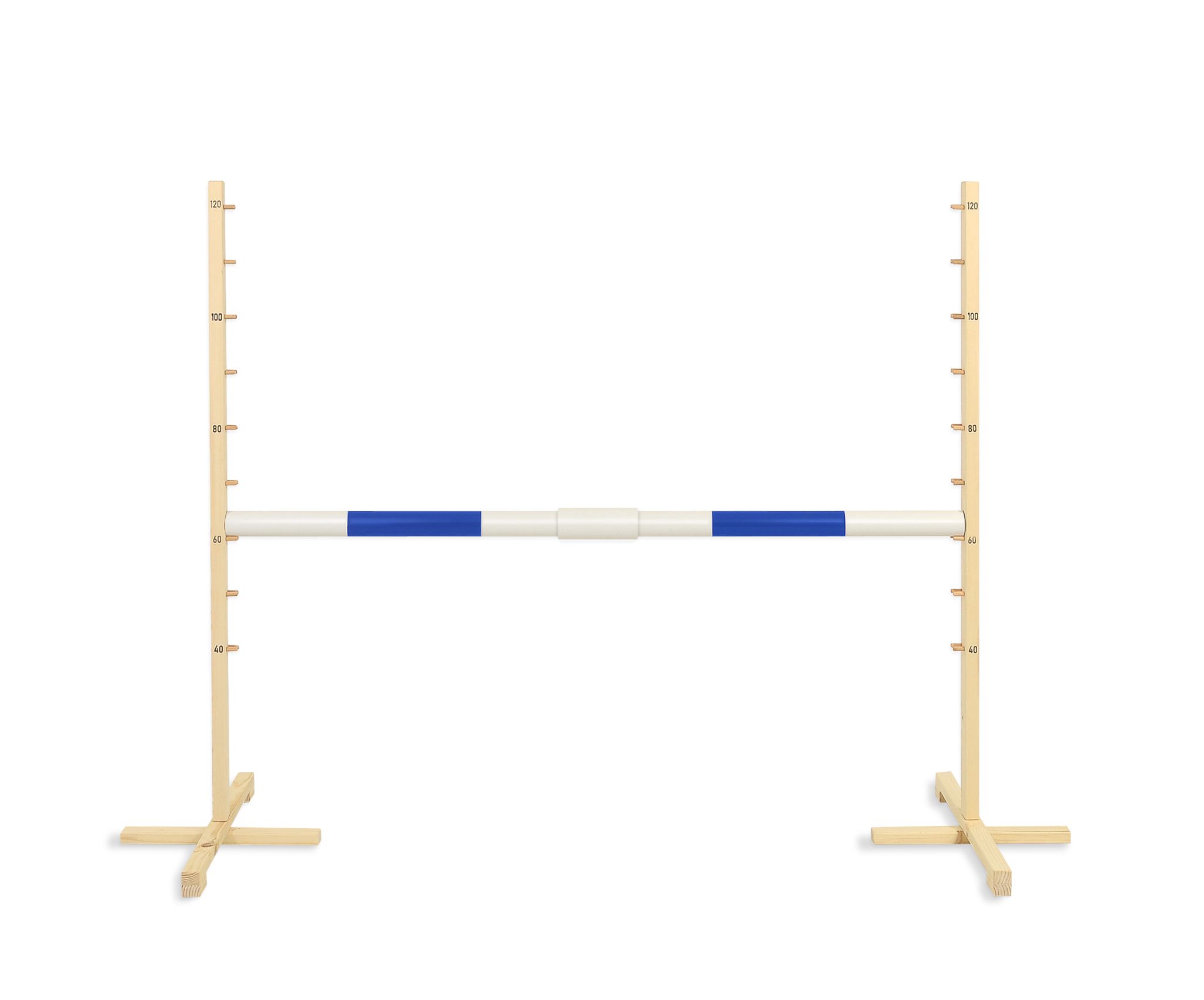 De stang kan worden ingesteld op een hoogte tussen 40 cm en 120 cm, afhankelijk van de lengte en motorische vaardigheden van het kind. De balk is ontworpen om neer te vallen wanneer er met de voet tegenaan wordt gestoten. Er is geen mogelijkheid voor het kind om tijdens de sprong om te vallen.