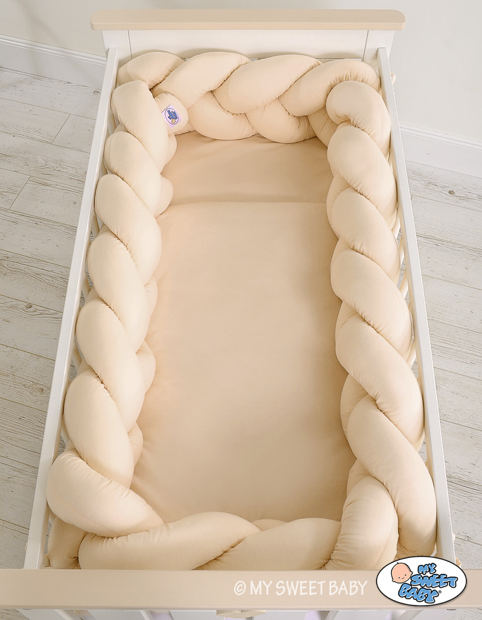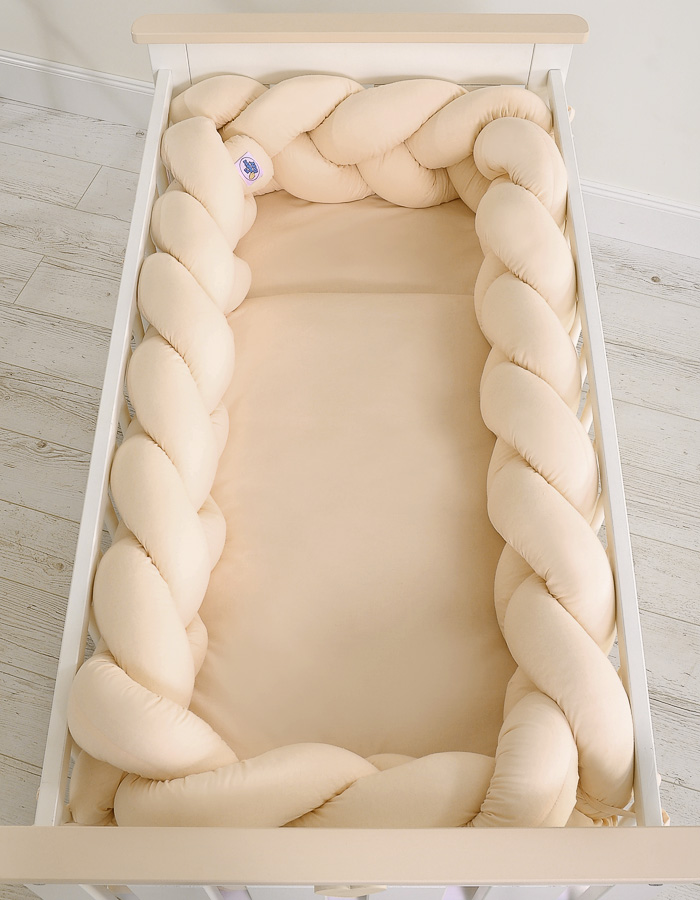 Kleinbaby.nl » Gevlochten Collectie » Gevlochten Bedbumper » Hoofdbeschermer Gevlochten 360cm Ledikant Beige